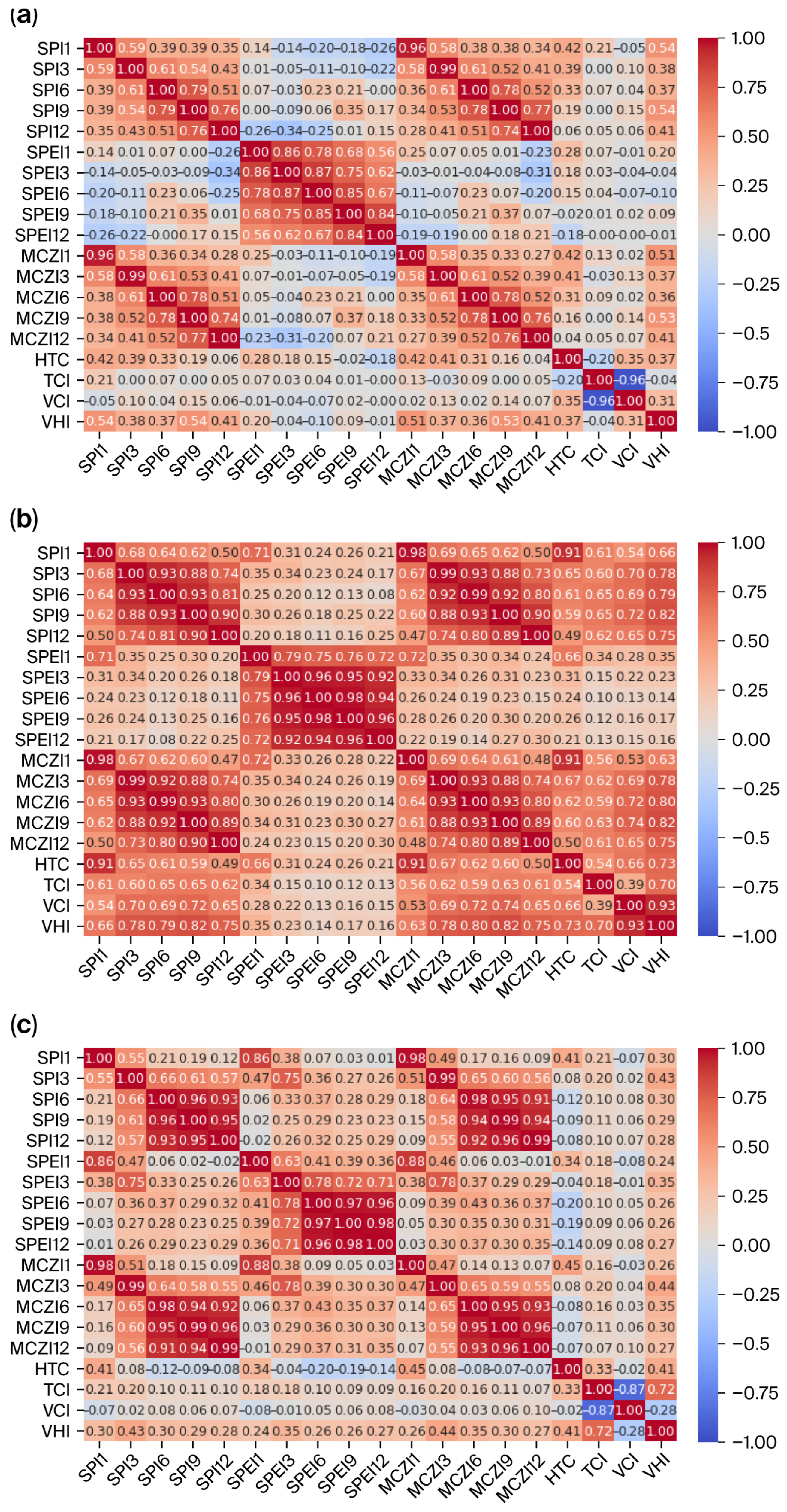 3.1. Correlation Analysis Between Meteorological and Vegetation Drought Indices