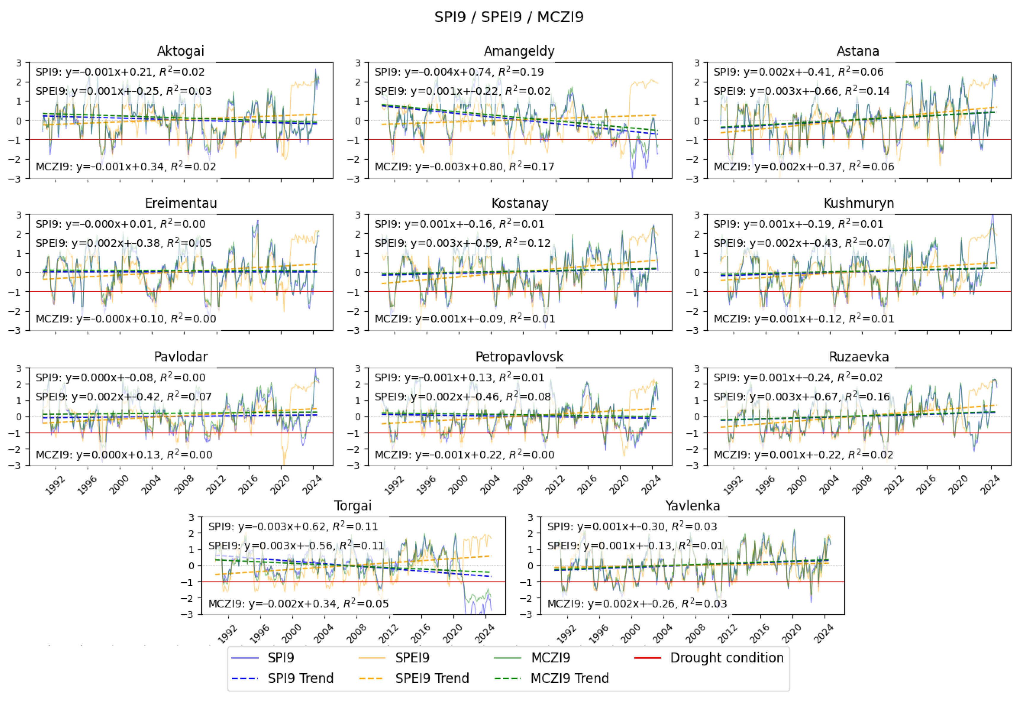Ryssaliyeva, L.; Salnikov, V.; Lin, Z.; Raimbekova, Z. Seasonal Sensitivity of Drought Indices in Northern Kazakhstan: A Comparative Evaluation and Selection of Optimal Indicators. Sustainability 2025, 17, 9413. https://doi.org/10.3390/su17219413