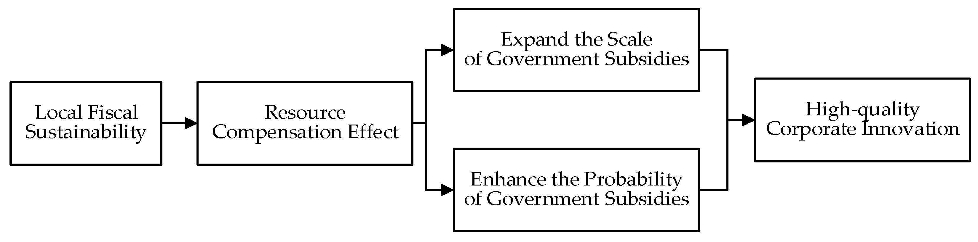 27]. The Chinese innovation landscape has now entered a new phase, transitioning from a focus on quantity to a focus on quality. Consequently, a pivotal question arises: Does local fiscal sustainability enhance high-quality corporate innovation? The academic community has yet to reach a consensus on this issue.
