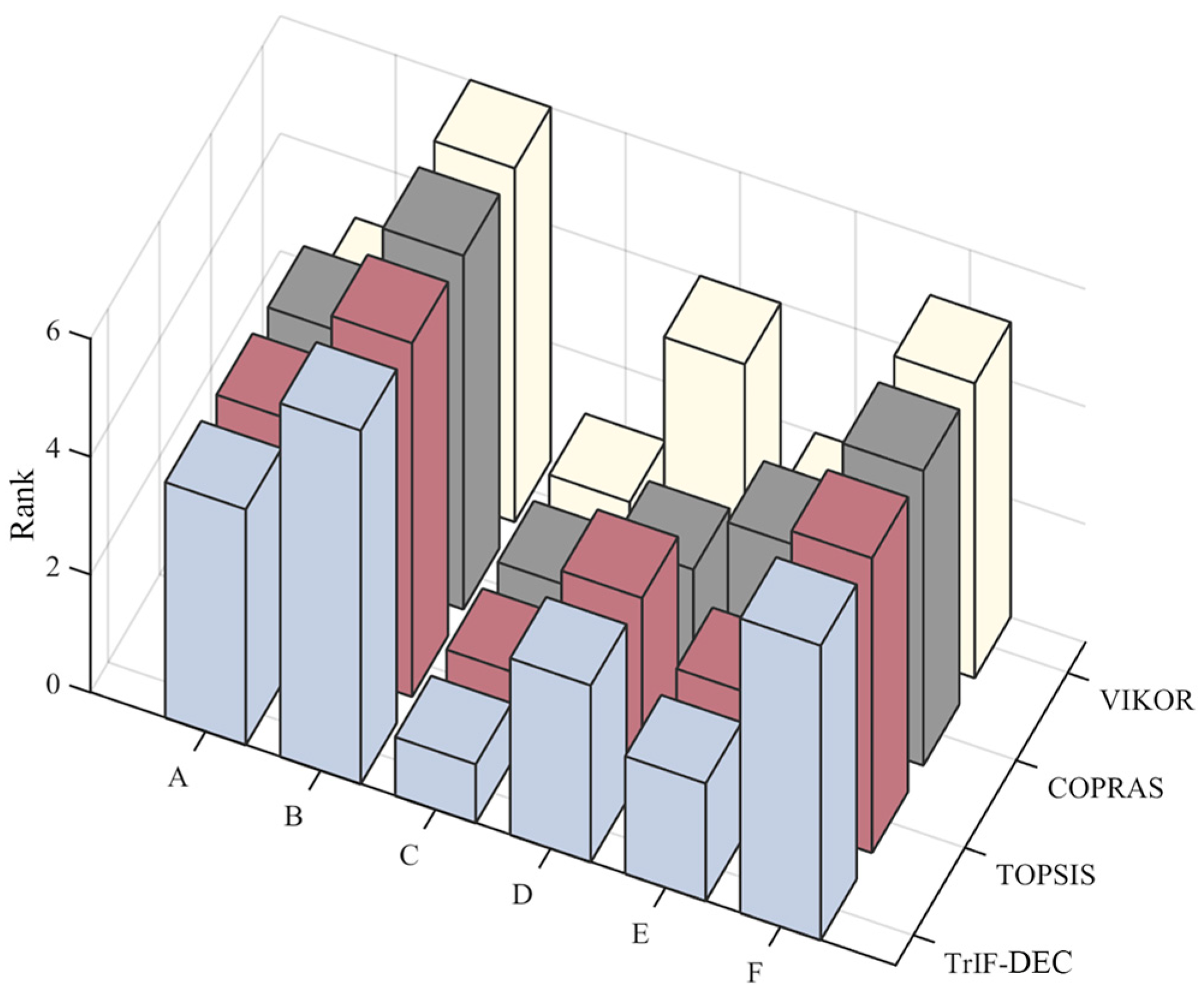 To verify the stability and effectiveness of the TrIF-DEC framework proposed in this study, we compared it with three common MCDM methods: TOPSIS [