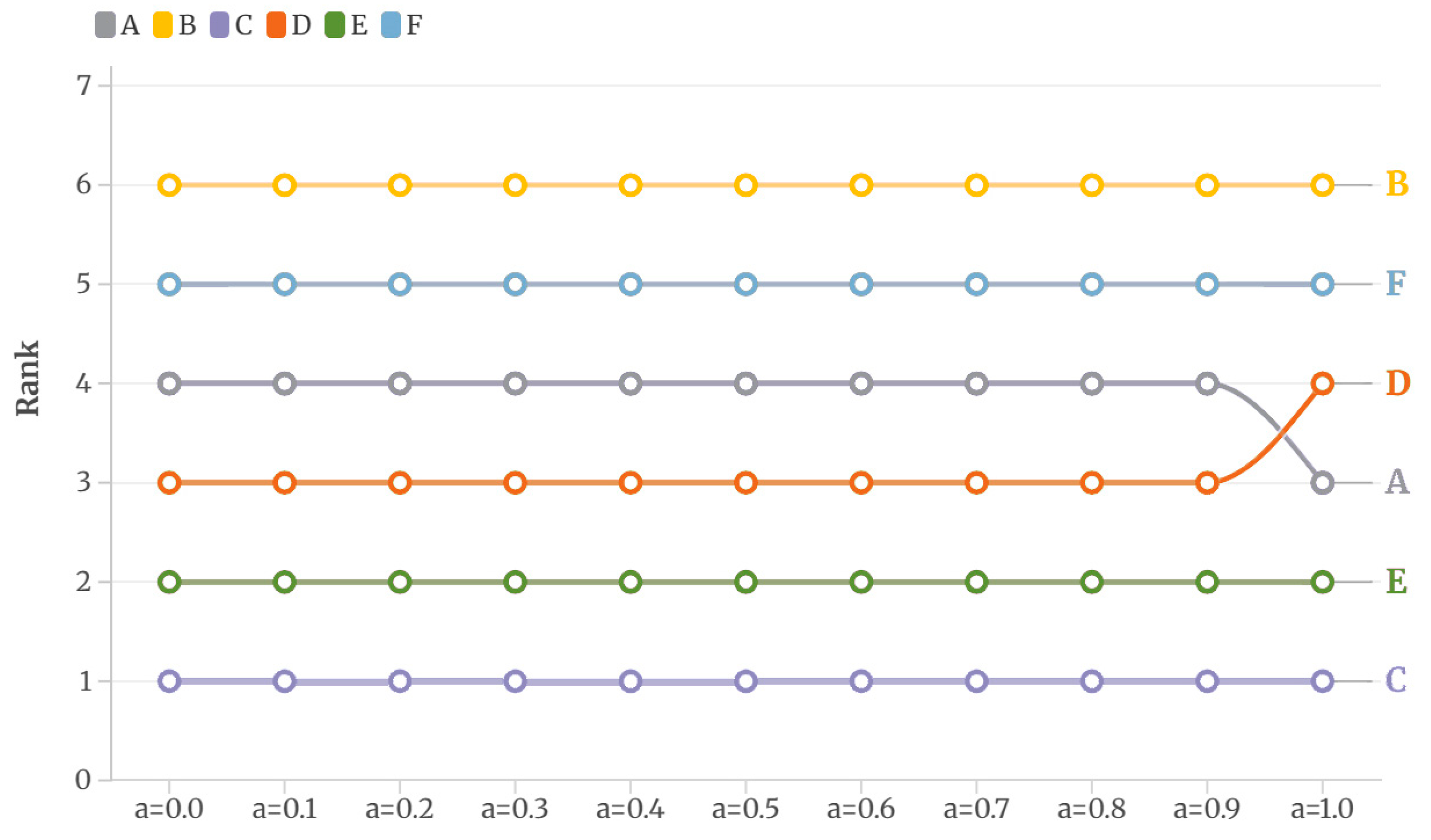 Figure 6 illustrates the changes in the rankings of schemes under different values of α.