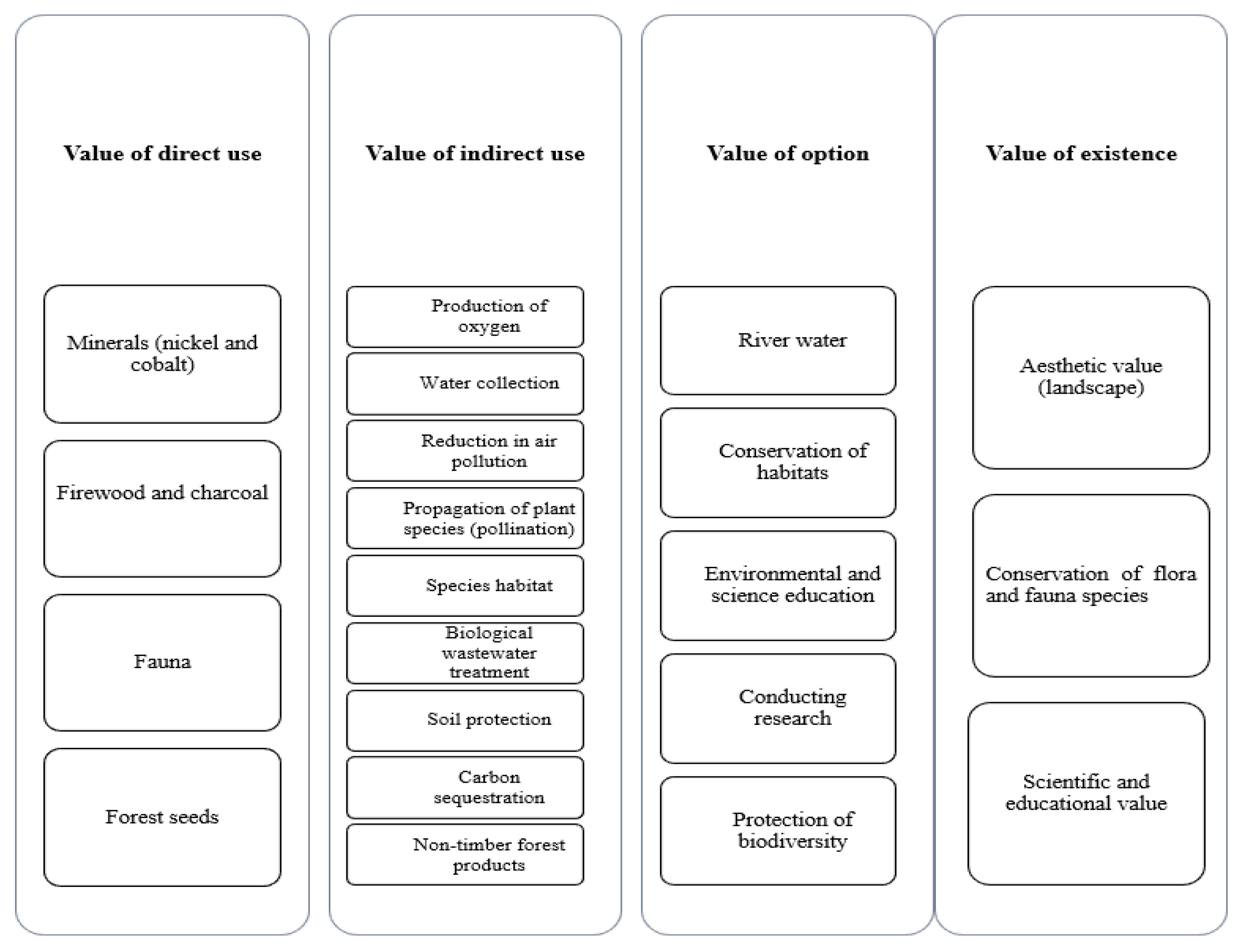 3.5. Identification of Ecosystem Goods and Services Affected by Mining and Economic Valuation of Goods and Services Present in the Ecosystem After Mining