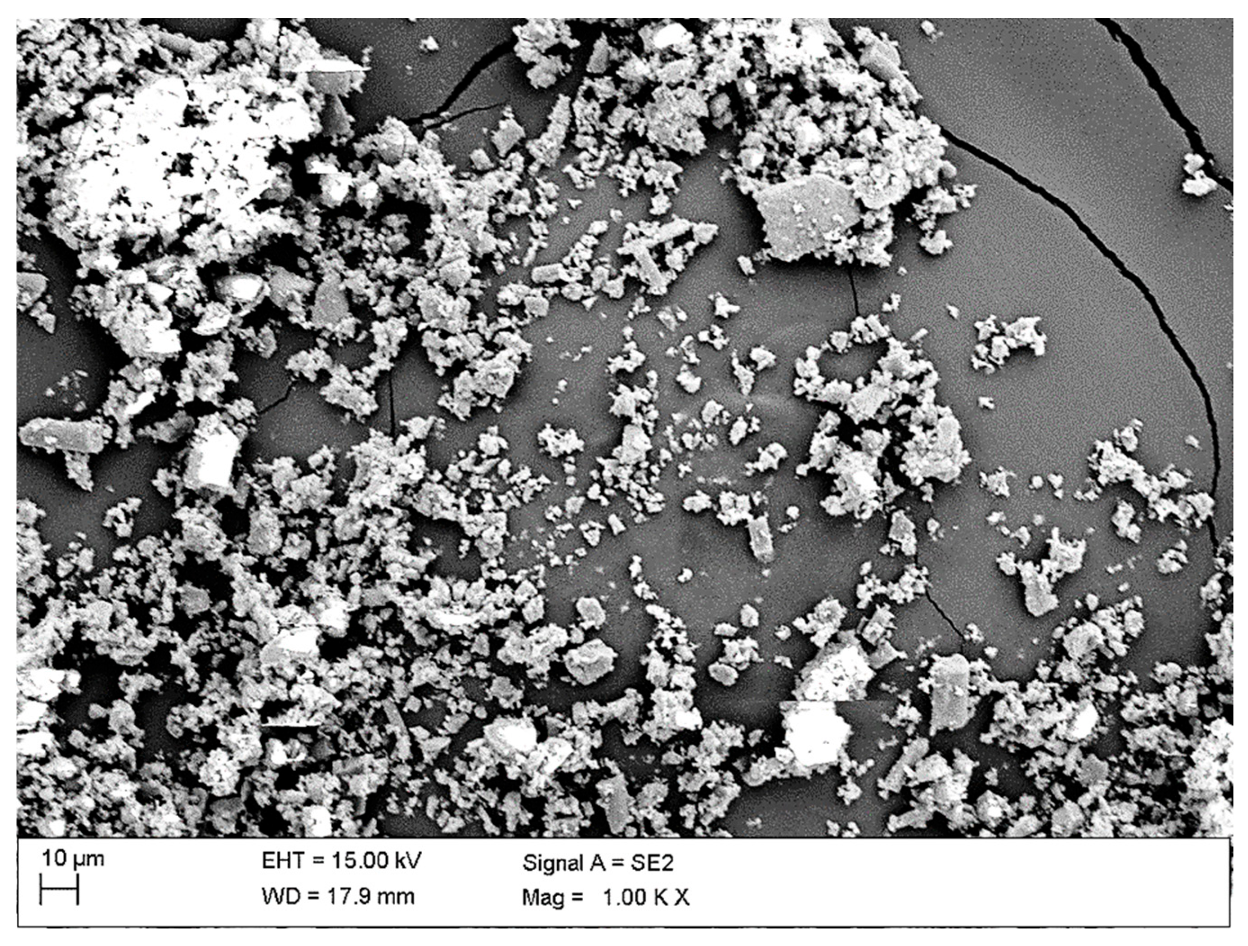The results presented in this study demonstrate a clear and quantifiable improvement in the comminution behavior of mineral wool waste upon the introduction of hard mineral additives, particularly bauxite. The influence of additive type and concentration on grinding efficiency, particle morphology, and final granulometric distribution provides novel insights into the mechanical activation mechanisms of fibrous aluminosilicate waste, which have not been previously reported in such a systematic manner [