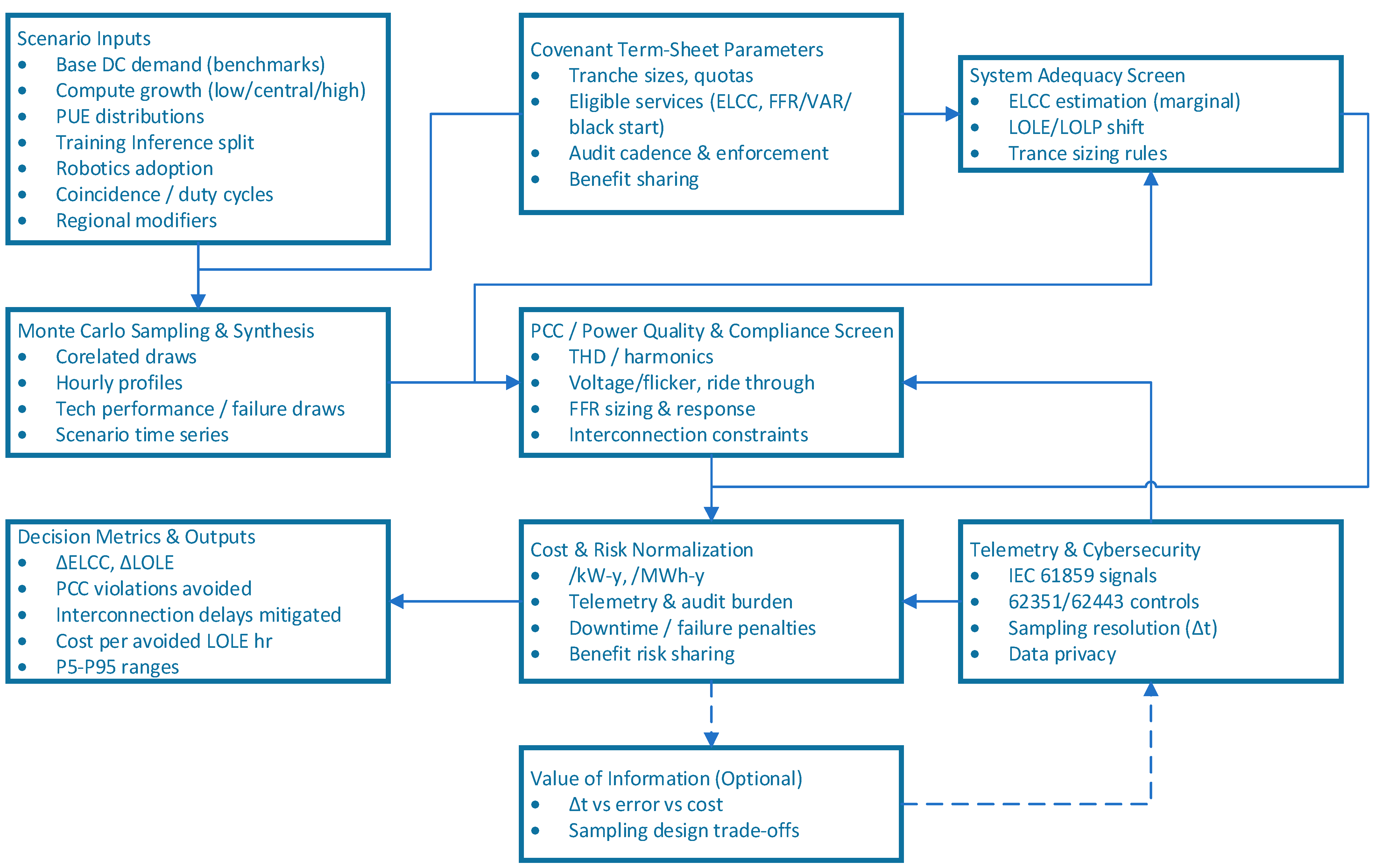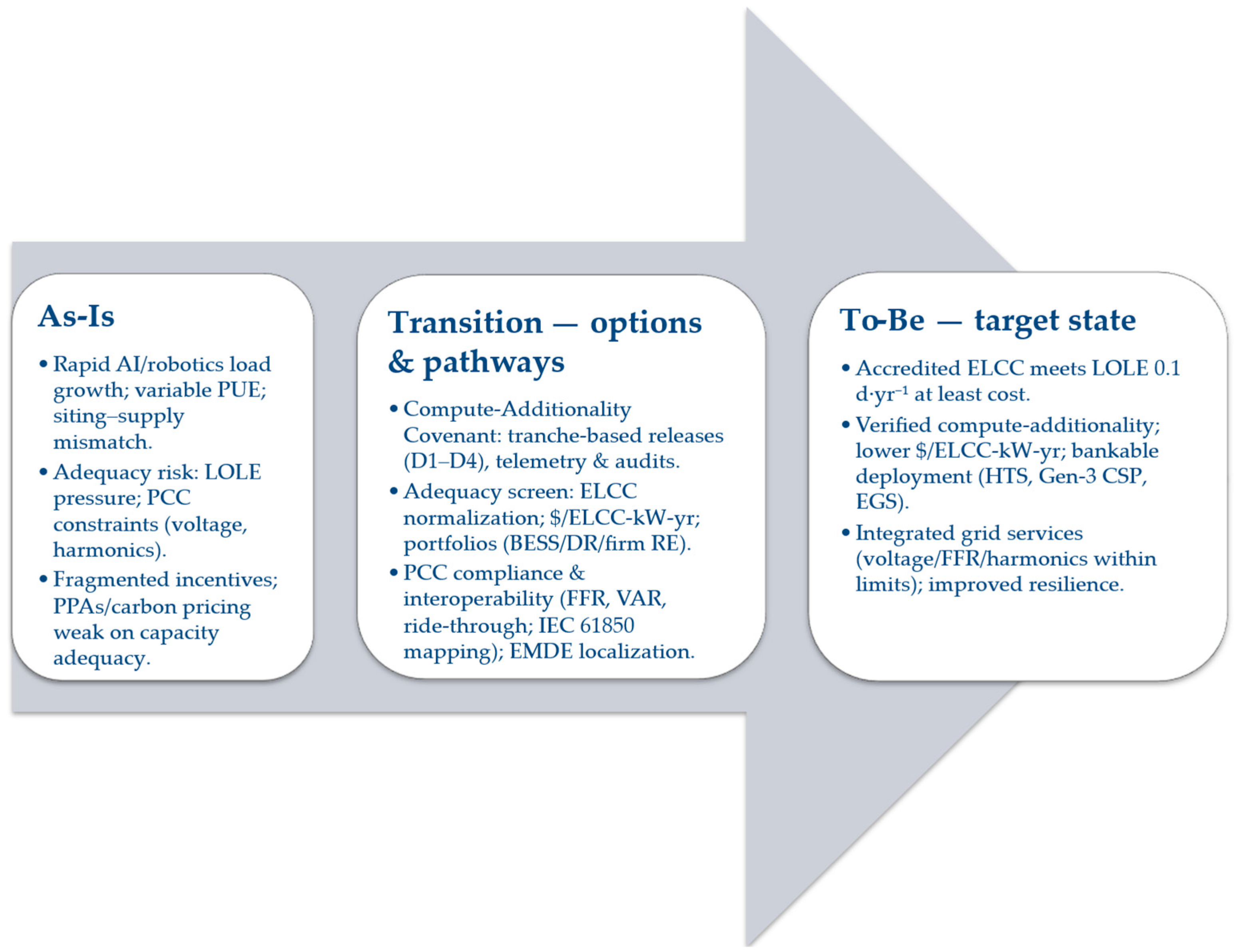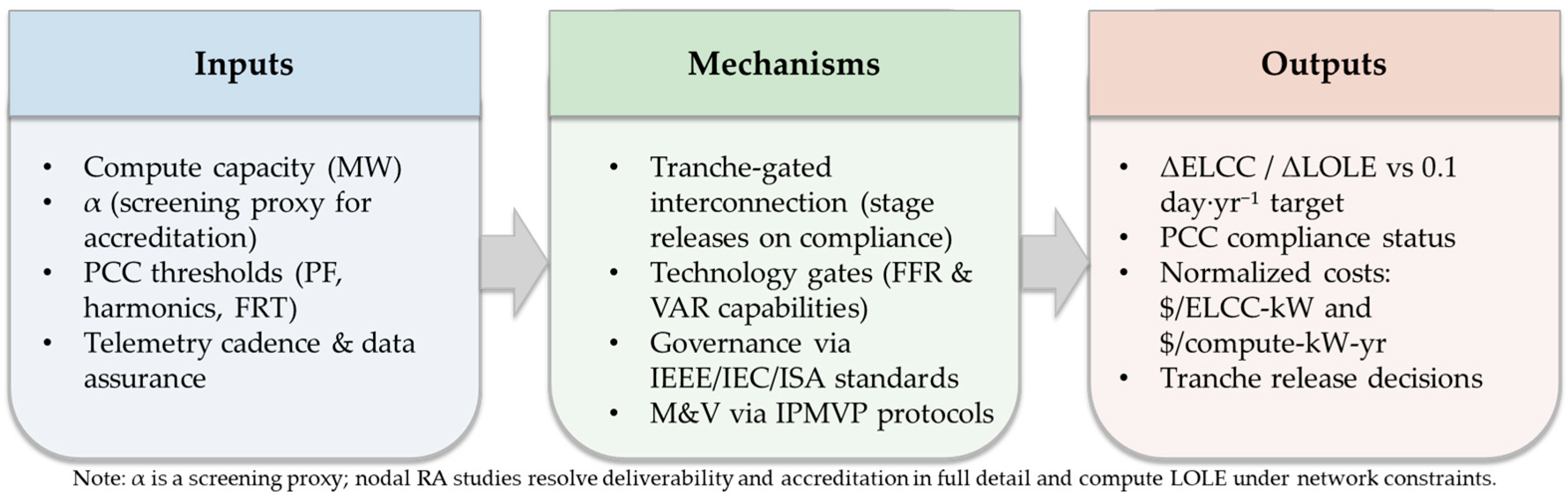 - Obligation portfolio: deliver either (i) PCC-level services meeting accredited set-points (FFR, dynamic VAR/voltage regulation, harmonic limits, ride-through) or (ii) ELCC-accredited firm-clean capacity inside the same capacity/BA zone, or a hybrid that meets the zone’s reliability target.