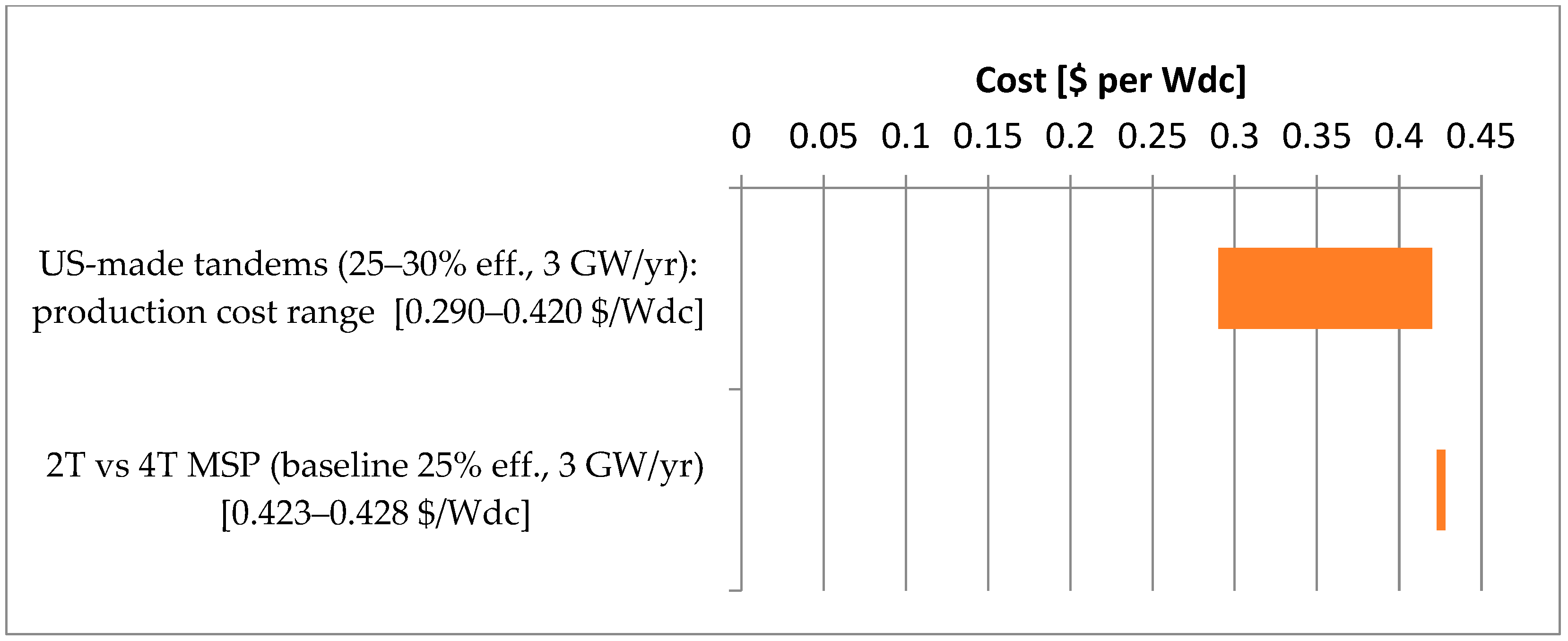 - Cordell, J.J.; Woodhouse, M.; Warren, E.L. Technoeconomic analysis of perovskite/silicon tandem solar modules. Joule 2025, 9, 101781. [Google Scholar] [CrossRef]