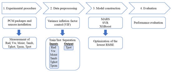 This section describes the experimental design, measurement system, and modeling approach adopted to investigate the thermal performance of coconut oil (CO) as a bio-based phase-change material (PCM) in greenhouse root-zone heating. Details on the greenhouse structure, environmental and thermal measurements, instrumentation accuracy, and data-acquisition procedures are presented. Furthermore, the section outlines the construction and optimization of the machine learning models MARS, SVR, and XGBoost used to predict root-zone temperature based on key climatic and internal parameters. The methodological framework aims to ensure the reproducibility, reliability, and statistical robustness of both experimental and computational analyses.