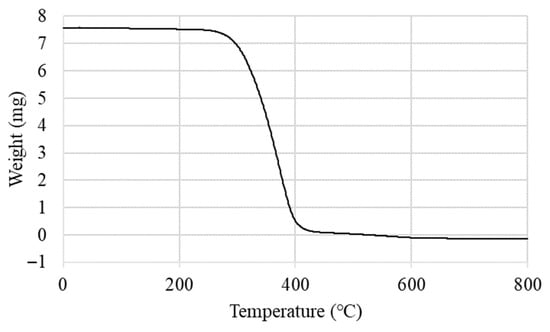 Thermogravimetric curve of coconut oil. Coconut oil starts to lose its mass at 200 °C, and it loses 95% of its mass at 400 °C.