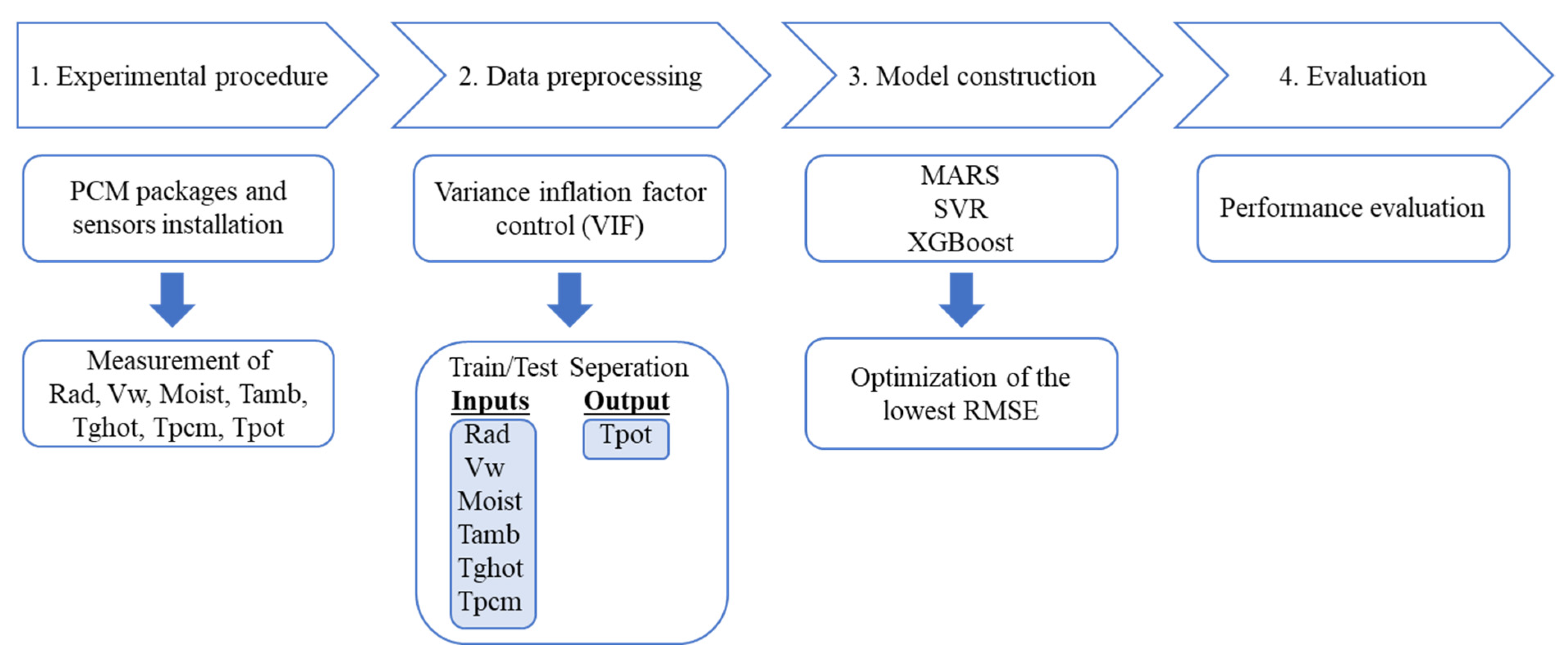 This study clarifies the effectiveness of machine learning models (SVR, MARS, XGBoost) in analyzing factors and PCM on root-zone temperature and predicting future values. The models combine climatic factors such as temperature, humidity, solar radiation, and wind velocity and internal factors like air temperature in the greenhouse and PCM temperature. These models try to reveal nonlinear relationships between inputs and outputs. With these learning models, target output can be predicted with a very accurate percentage using existing input data.
