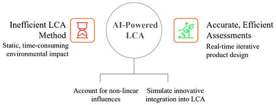 Recent works have now begun to include AI and ML techniques to simulate innovative integration into LCA for automation, scalability, and predictive capability in the scope of environmental impact modeling. Particularly relevant are deep learning models, capable of accounting for non-linear influences among design features and their particular environmental outcomes, hence “improving” the accuracy and efficiency of sustainability assessments. Figure 1 shows the improvement of sustainability assessments with AI.