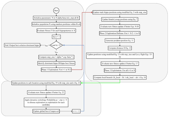 - Amiri, M.H.; Mehrabi Hashjin, N.; Montazeri, M.; Mirjalili, S.; Khodadadi, N. Hippopotamus optimization algorithm: A novel nature-inspired optimization algorithm. Sci. Rep. 2024, 14, 5032. [Google Scholar] [CrossRef] [PubMed]
