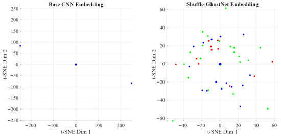 Manual t-SNE: base CNN vs. Shuffle-GhostNet.