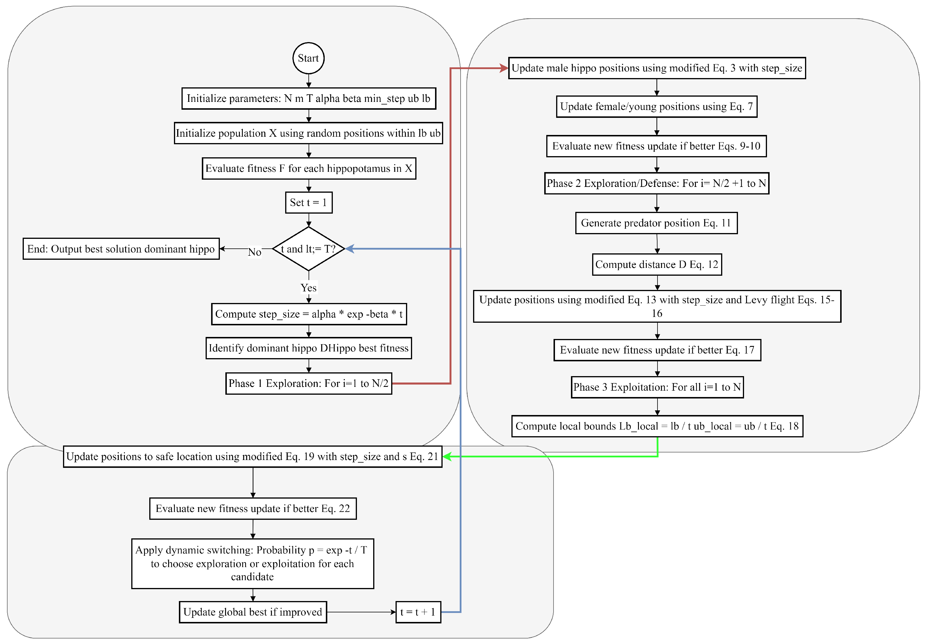 18. Amiri, M.H.; Mehrabi Hashjin, N.; Montazeri, M.; Mirjalili, S.; Khodadadi, N. Hippopotamus optimization algorithm: A novel nature-inspired optimization algorithm. Sci. Rep. 2024, 14, 5032. [Google Scholar] [CrossRef] [PubMed]