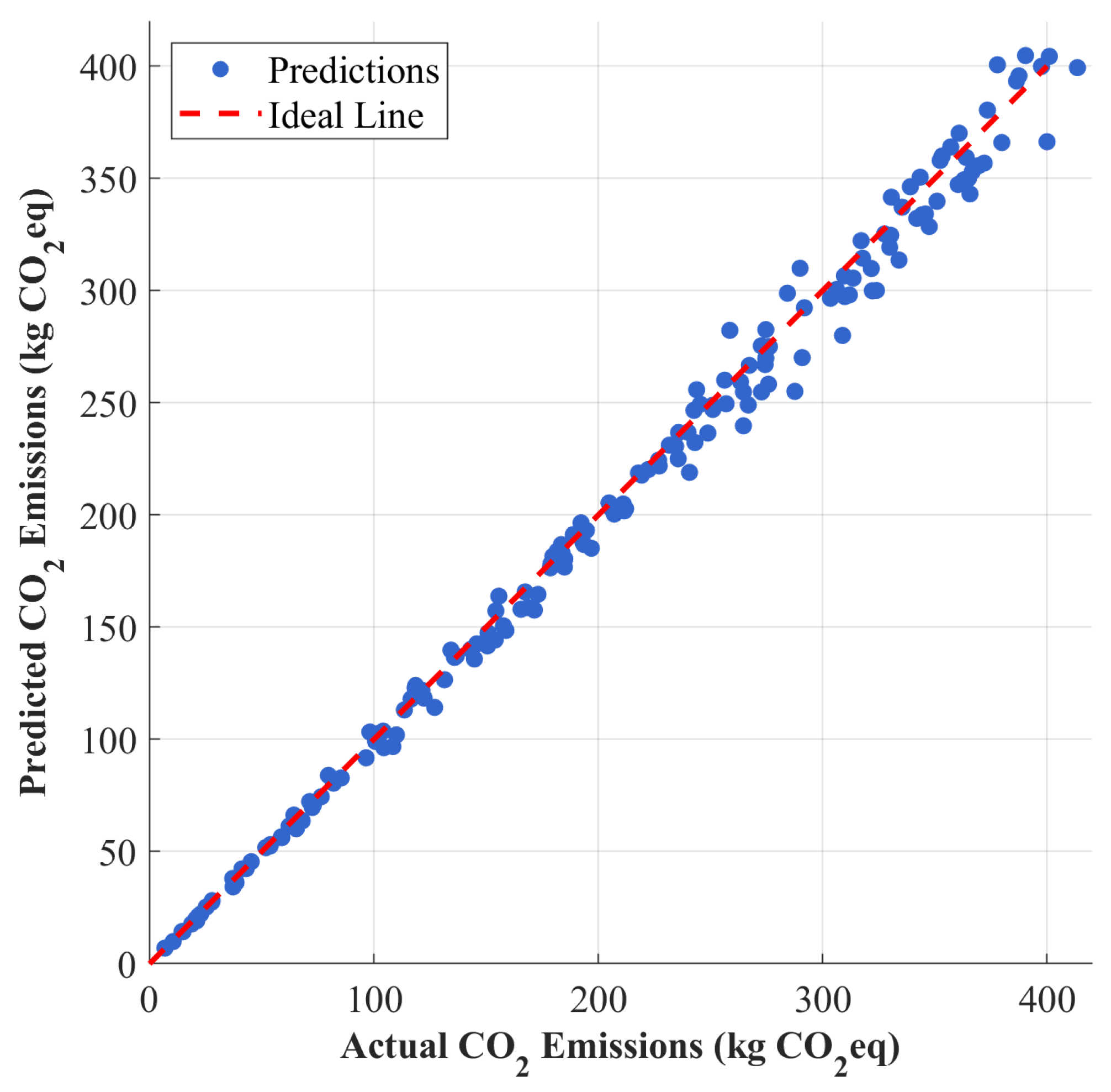 Figure 12. Model prediction accuracy: predicted vs. actual CO2 emissions.