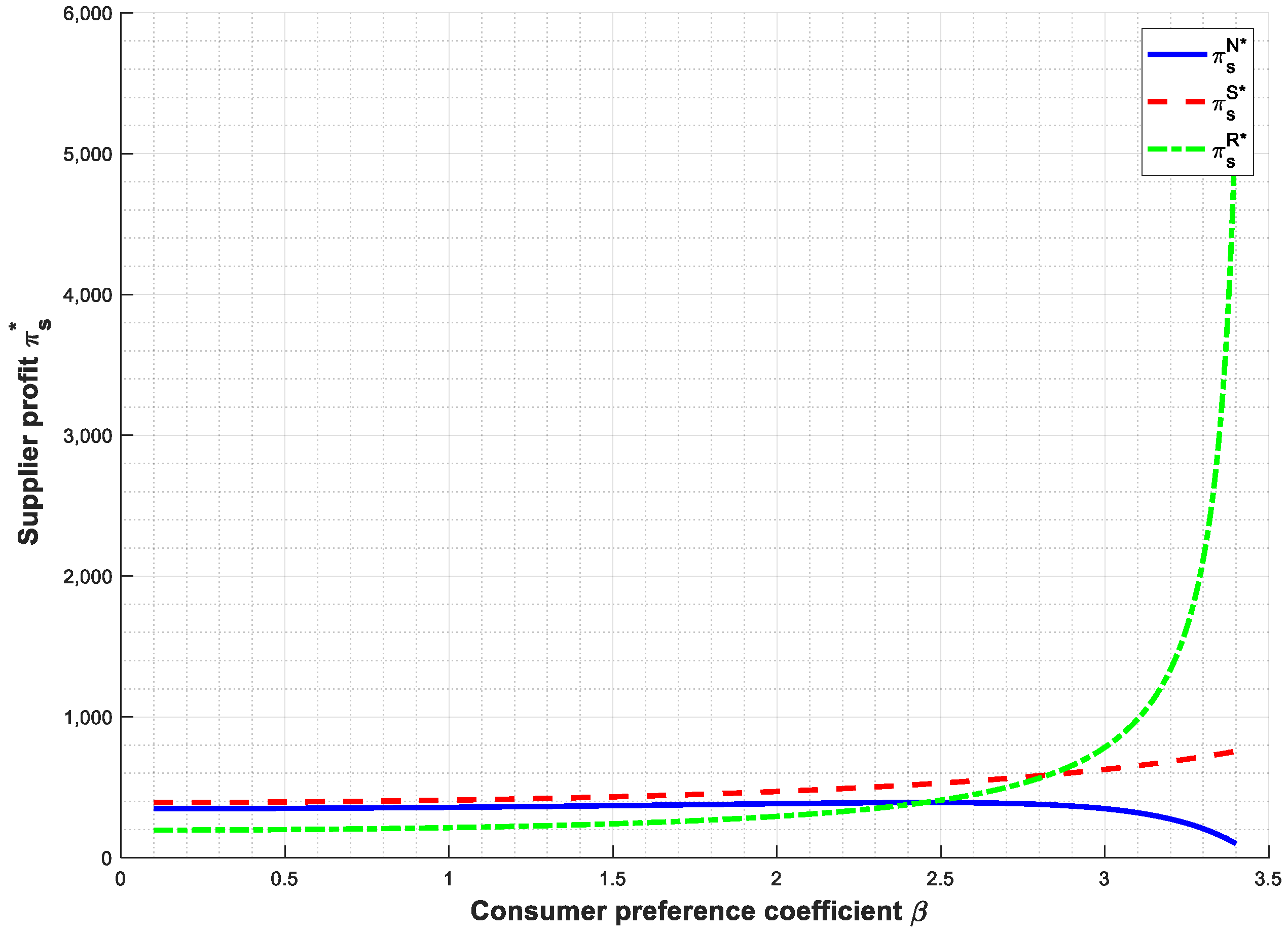 5.2. The Impact of Supply Chain Power Structure on the Equilibrium Solution