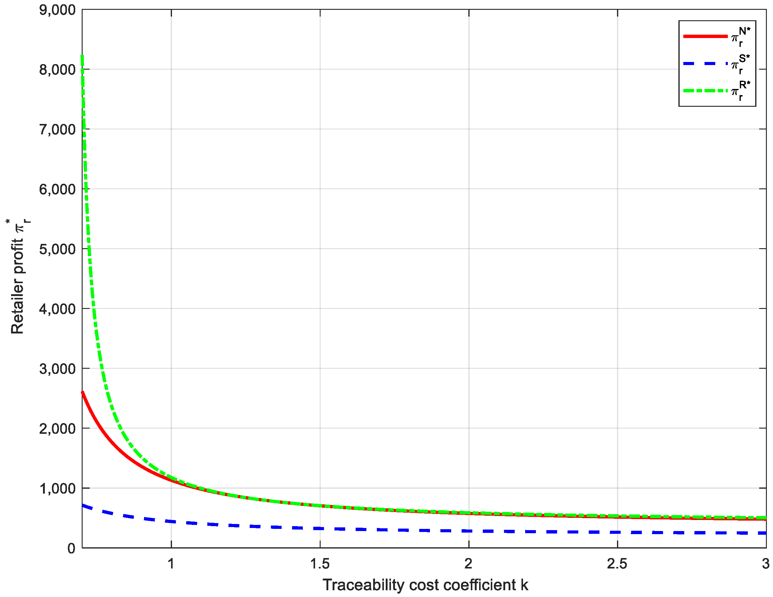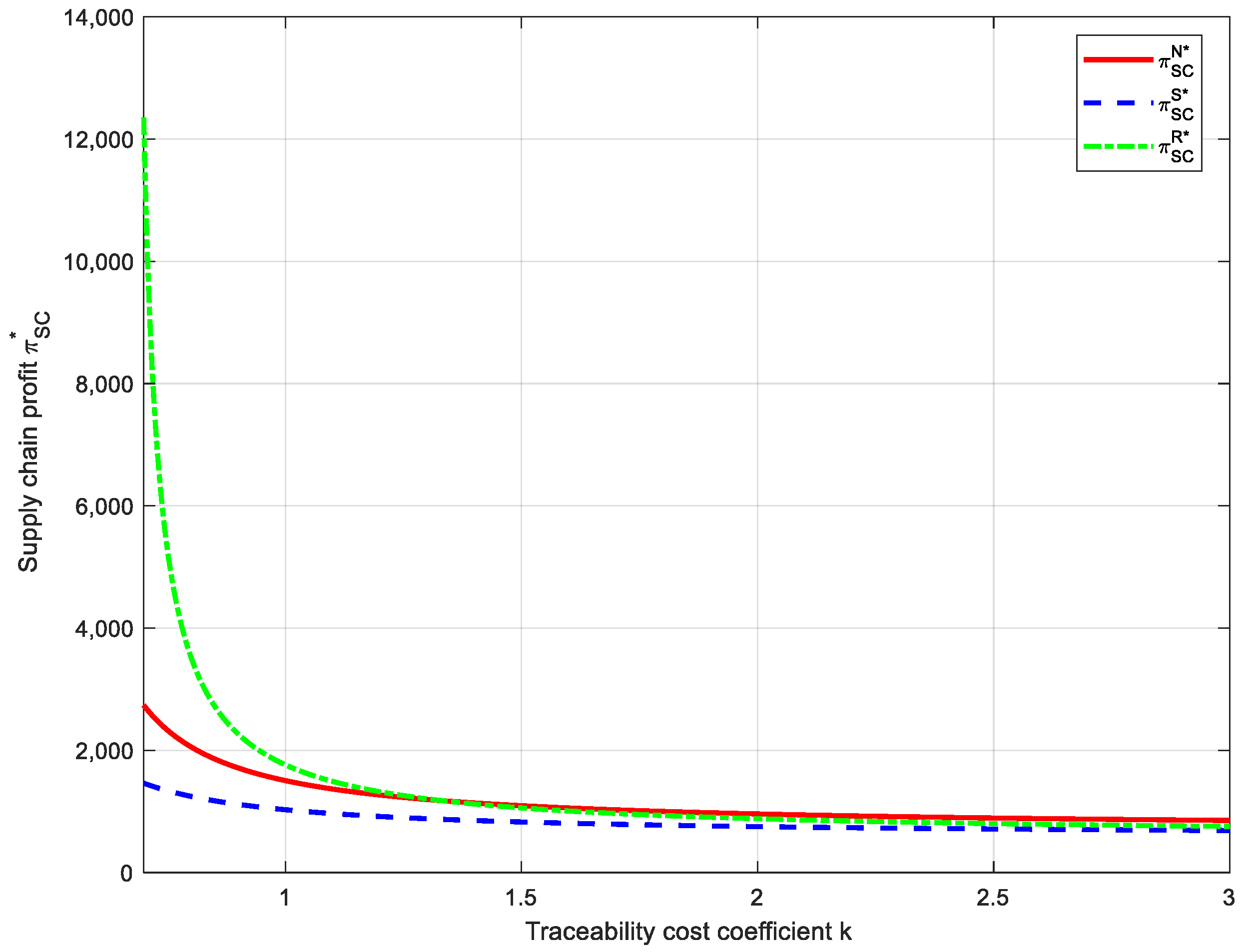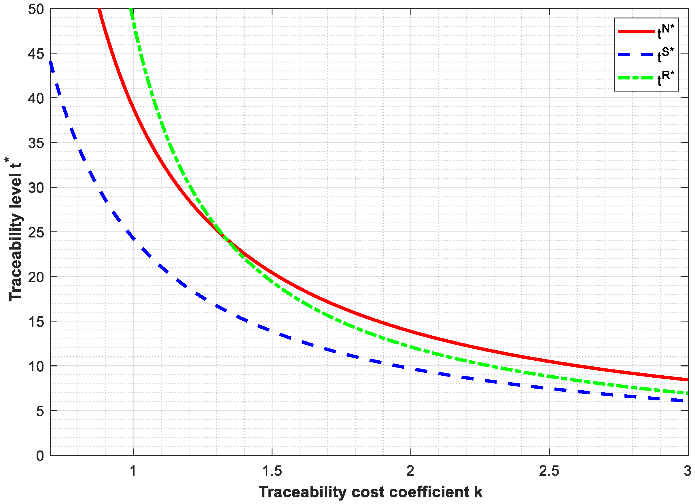 7.2. Effects of Traceability Cost Coefficient k on Supply Chain Traceability Performance