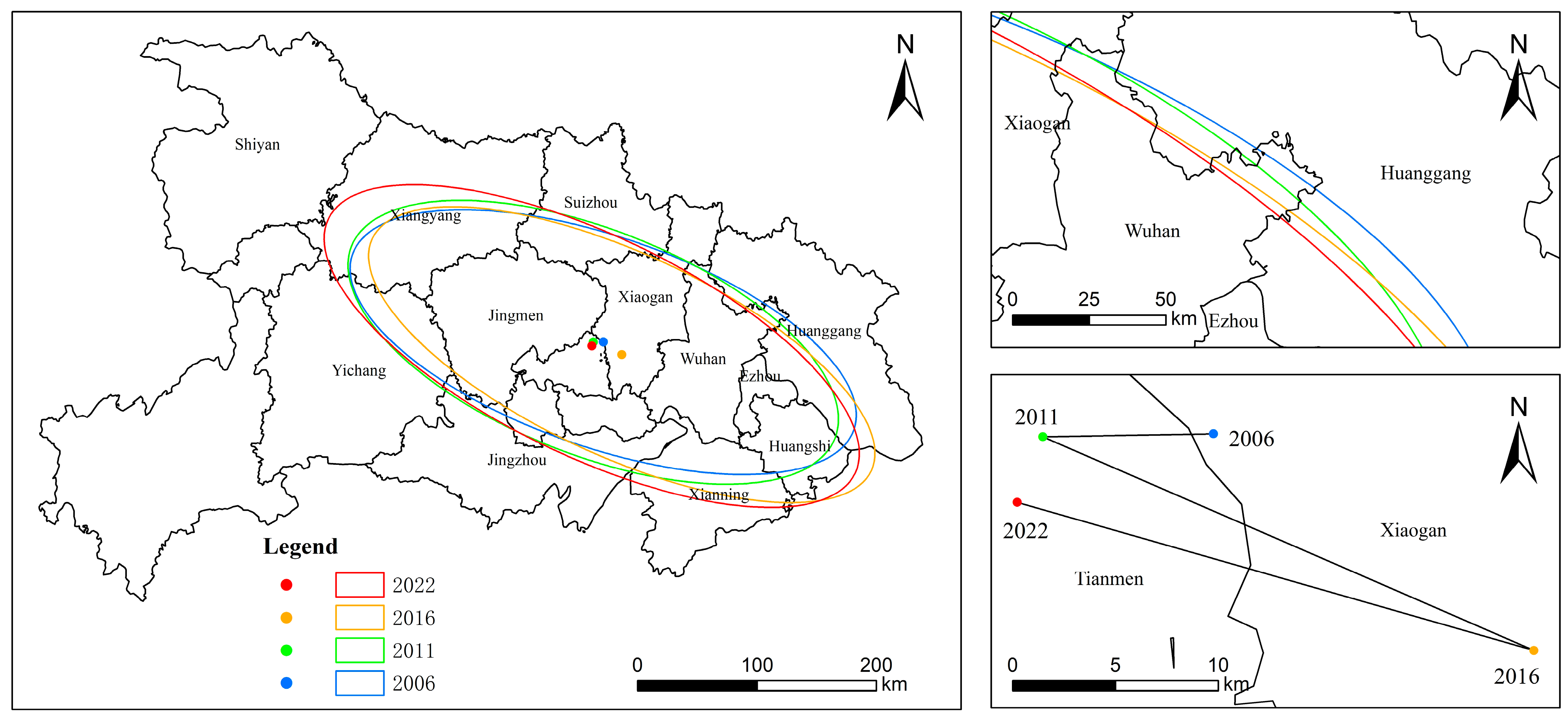 4.1. Spatiotemporal Characteristics of CEE in Hubei