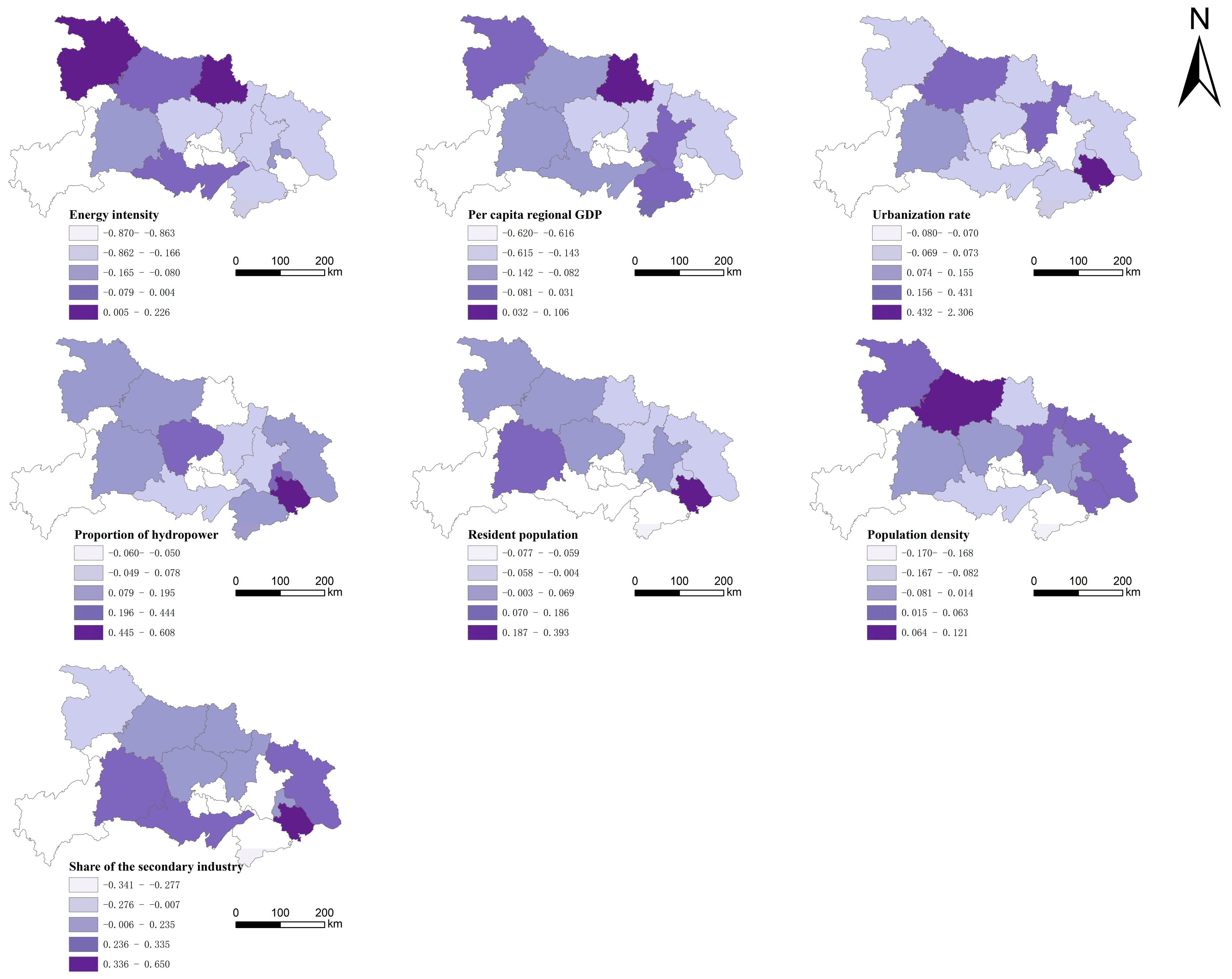 4.4.2. Spatiotemporal Heterogeneity in the Effects of Determinants