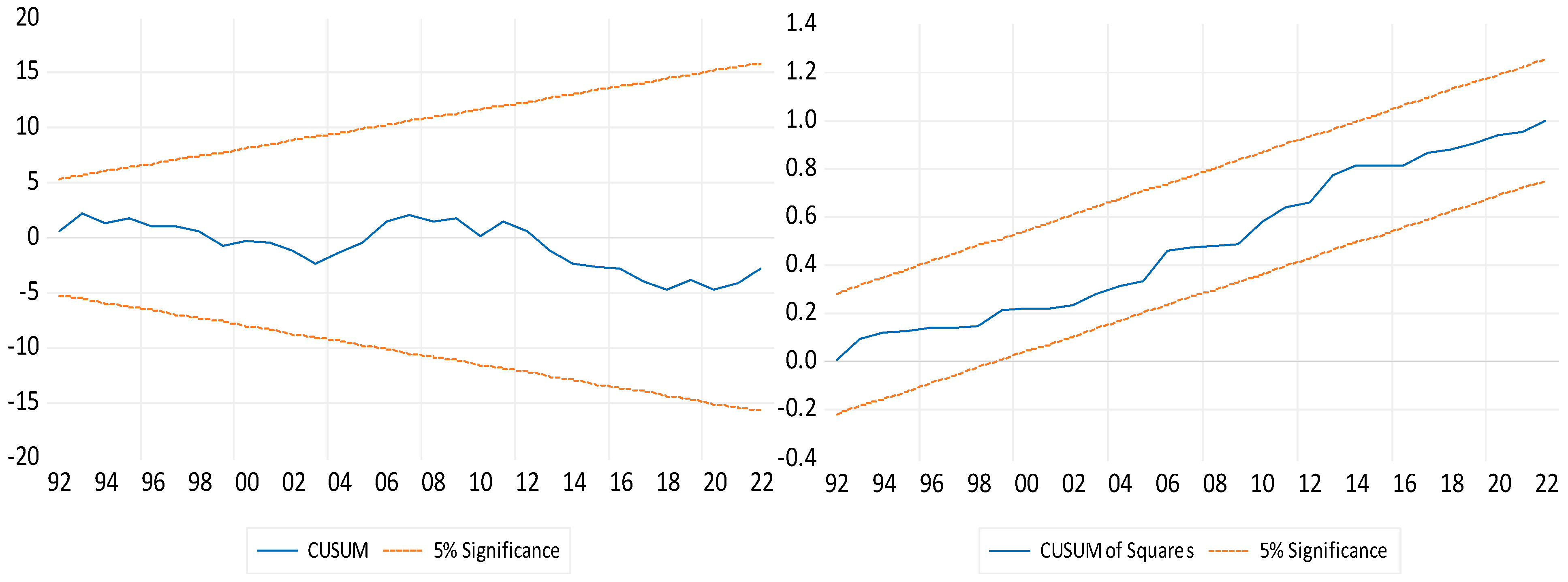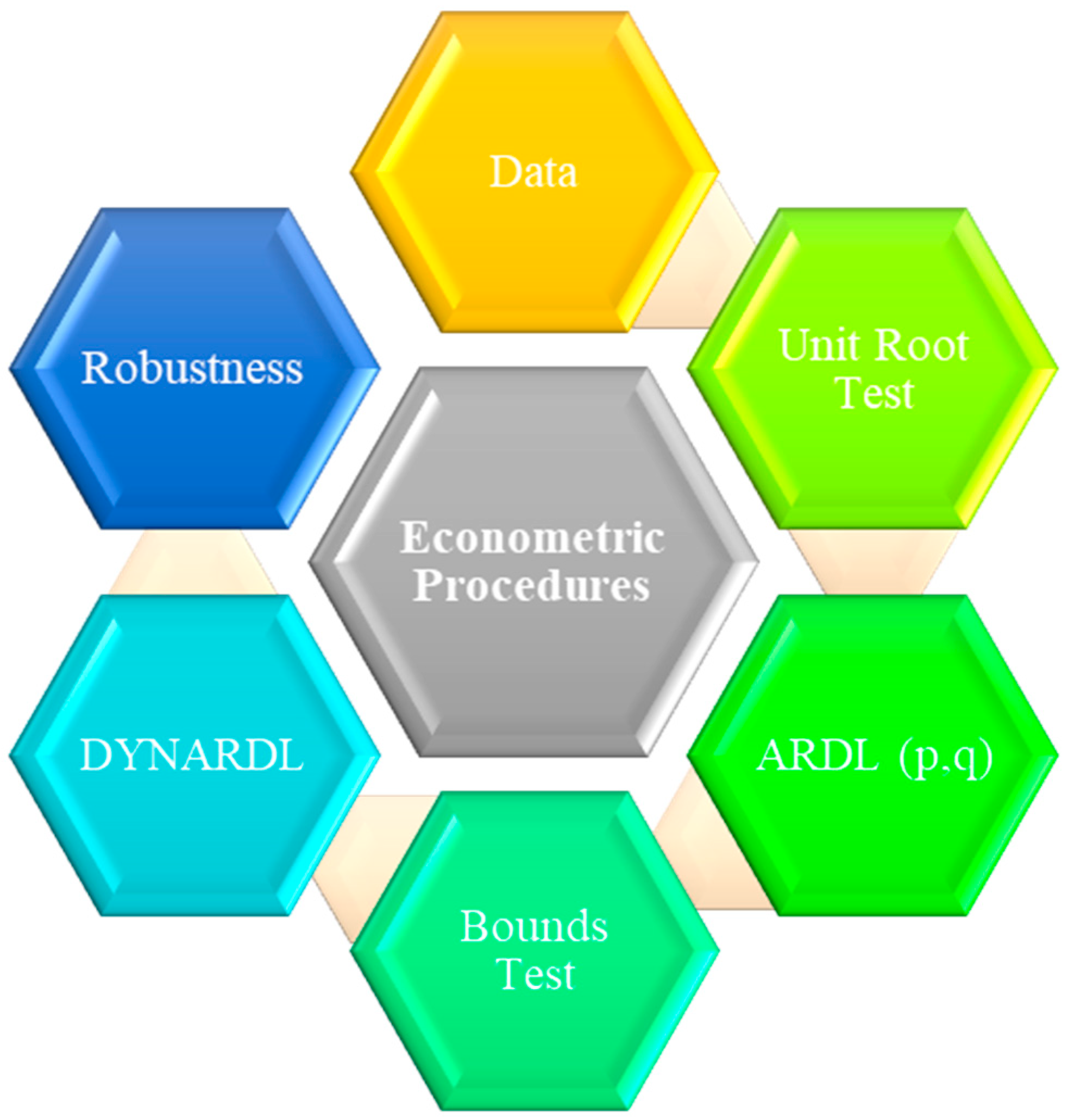- Pesaran, M.H.; Shin, Y.; Smith, R.J. Bounds Testing Approaches to the Analysis of Level Relationships. J. Appl. Econ. 2001, 16, 289–326. Available online: https://www.jstor.org/stable/2678547 (accessed on 5 October 2025). [CrossRef]