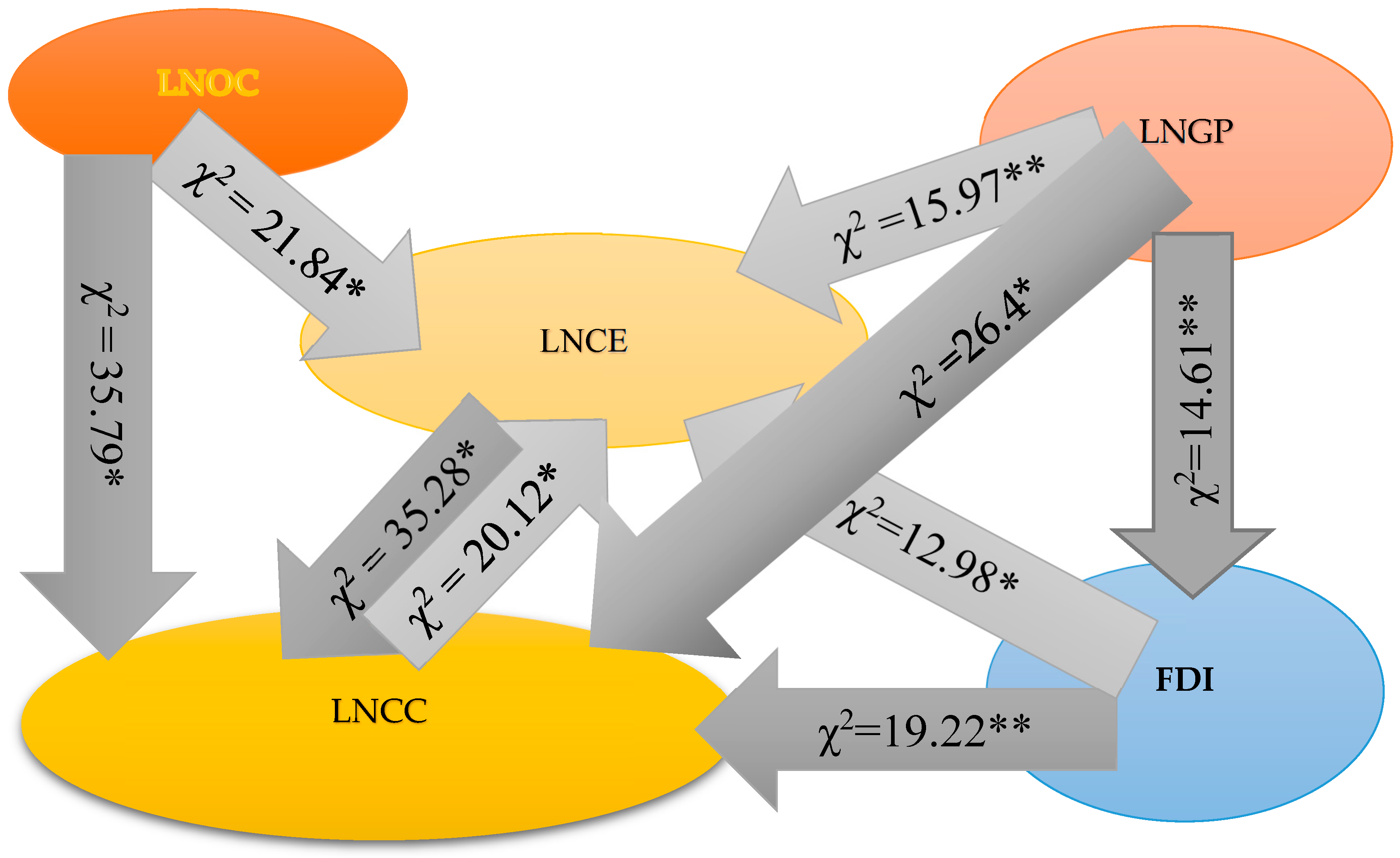 | LNGP | −0.03 | −4.19 | 0.00 * | −0.04 | −9.29 | 0.0 * | −0.03 | −4.21 | 0.0 * |