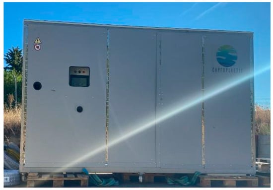A mobile pilot plant owned by Captoplastic, company located in Madrid (Spain) (Figure 3), with a treatment capacity of up to 5000 L/h, was used to quantify and remove microplastics from the different streams. It is the only microplastic recovery technology that has an analysis method for quantifying microplastics, allowing continuous sampling at the WWTP. The flow rate treated in the pilot plant (5 m3 d−1) is considered representative of medium-sized full-scale treatment plants, such as the reference WWTP (2500 m3 d−1). In pilot-scale studies, flow rates are typically between 0.1% and 1% of the full-scale facility’s design flow rate, a range within which the system used falls (0.2%). This ratio allows for comparable hydraulic and mass loading ratios, ensuring the validity of the extrapolation of results to real-life operating conditions [59].