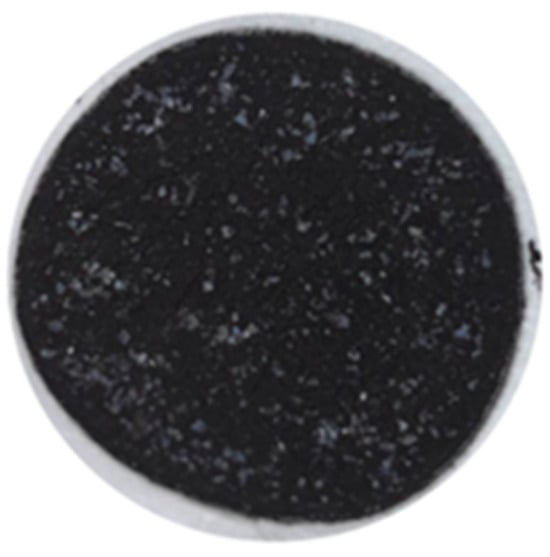 In the oxidation phase, all the material previously recovered by magnetic means was subjected to ten consecutive cycles of microwave-assisted oxidation to completely remove the retained organic matter without damaging the magnetic particles. The reagents used in the oxidation process were supplied in the determination kit described above and are based on the Fenton process, which requires prior adjustment of the sample pH to pH0 = 3. Once the oxidation cycles were completed, the resulting solution was filtered again, collecting a second filter that, in principle, should only contain the MP and the magnetic collector. Figure 6 shows an image of the filter, covered by the dark-colored magnetic collector, in which the PET particles can be seen.