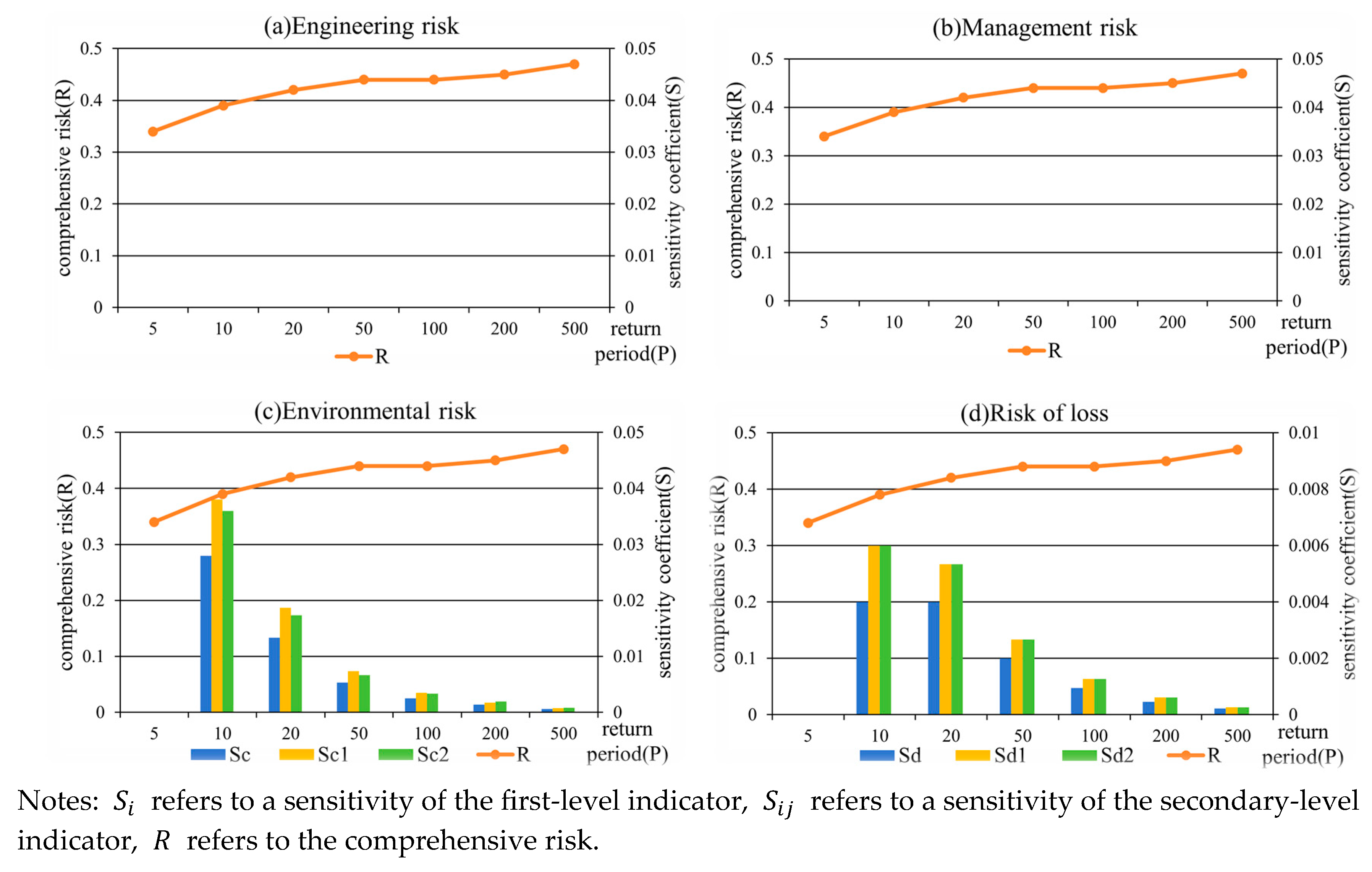 3.2. Sensitivity Analysis of Various Levels of Risks of the Check Dam System to Precipitation Return Period