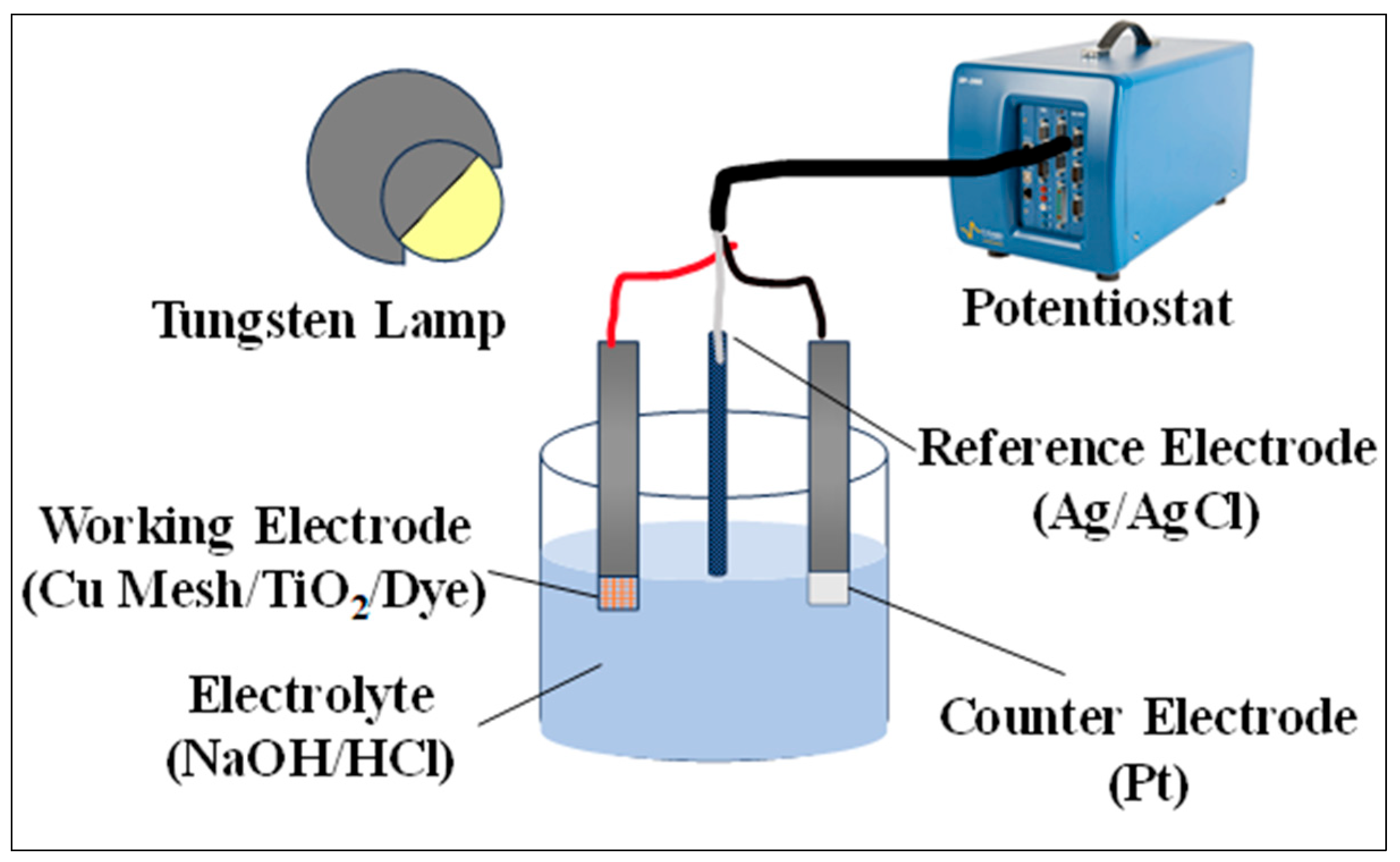- Dhonde, M.; Sahu, K.; Das, M.; Yadav, A.; Ghosh, P.; Murty, V.V.S. Review—Recent Advancements in Dye-Sensitized Solar Cells; From Photoelectrode to Counter Electrode. J. Electrochem. Soc. 2022, 169, 066507. [Google Scholar] [CrossRef]