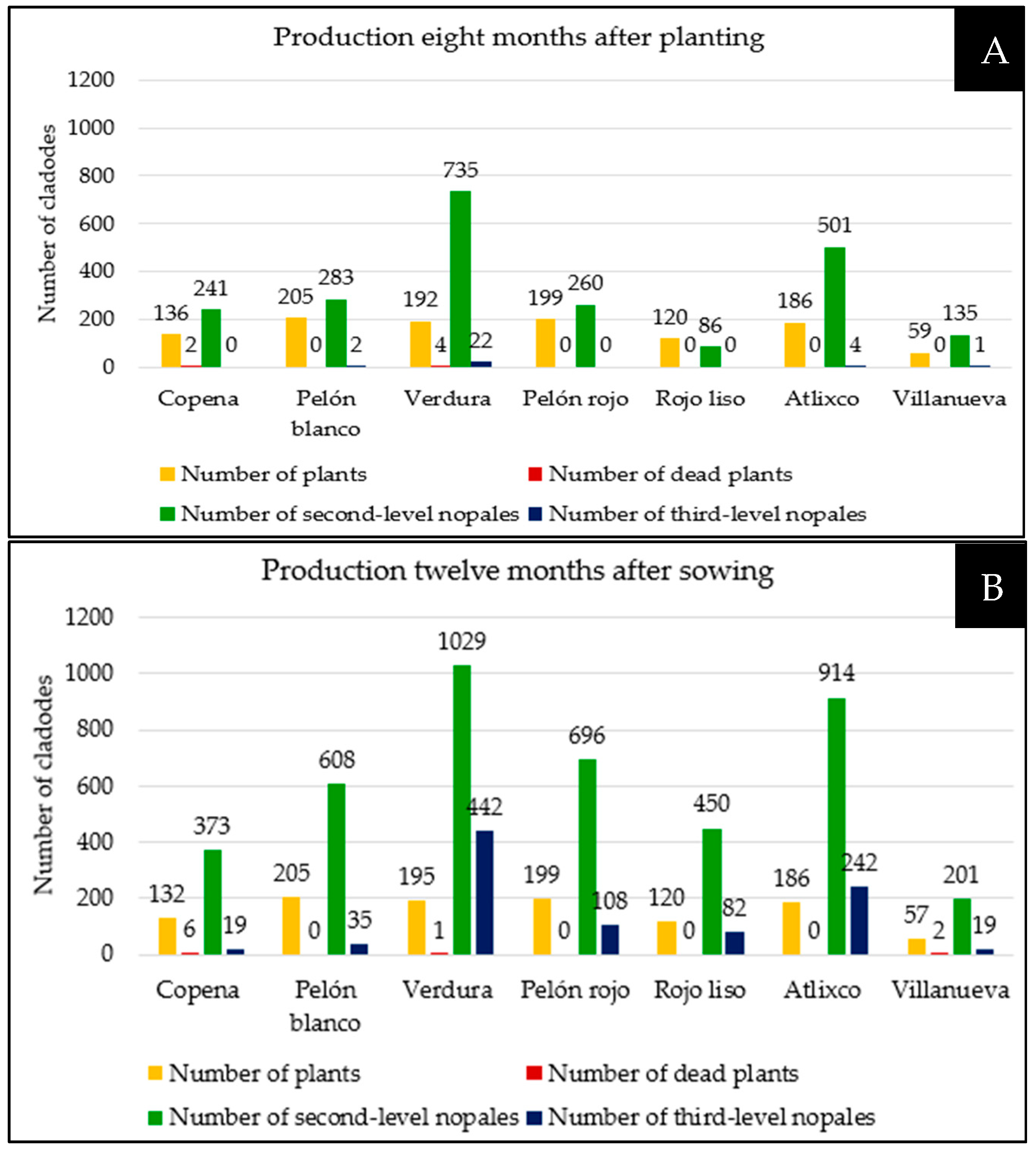 3.1. First Phase: Survival After Sowing and Emission of the Second and Third Levels of Cladodes