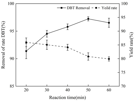 3.2.4. Effect of Oxidation Reaction Time on Desulfurization Performance