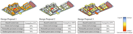 According to the “Volume Method” outlined in the Guide, the overall stormwater runoff control capacity of an urban design proposal is calculated to verify compliance with local design rainfall standards and to ensure that the “Volume of LID Facilities for Catchment Runoff Control” criteria are met. The results are then output in tabular form. By applying the principles of controlled variable experiments, designers can analyze the impact of a specific LID strategy on the overall stormwater runoff control capacity, thereby enabling informed optimization and adjustments.