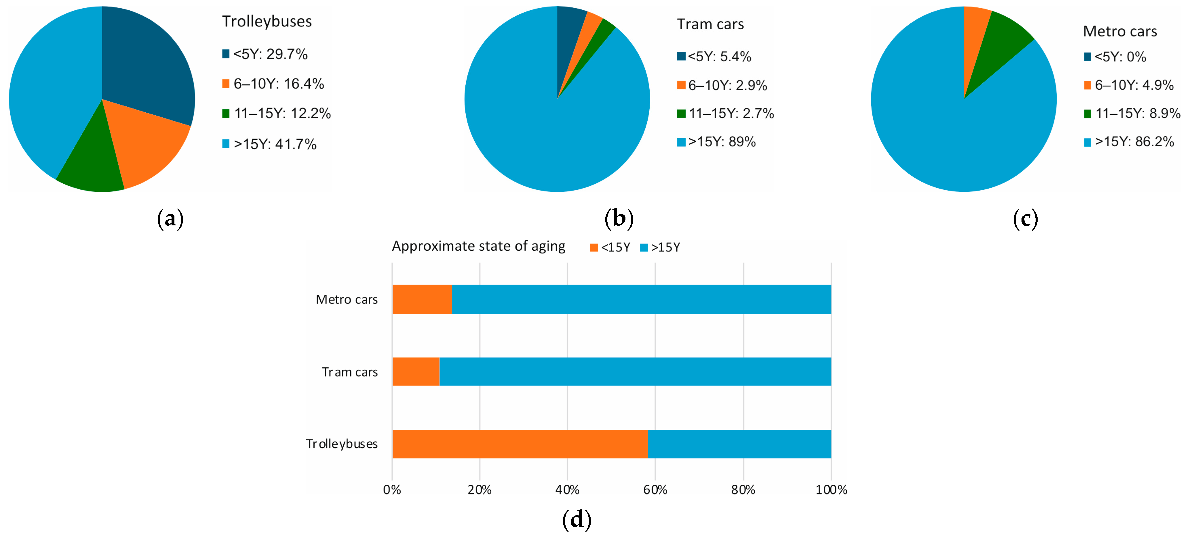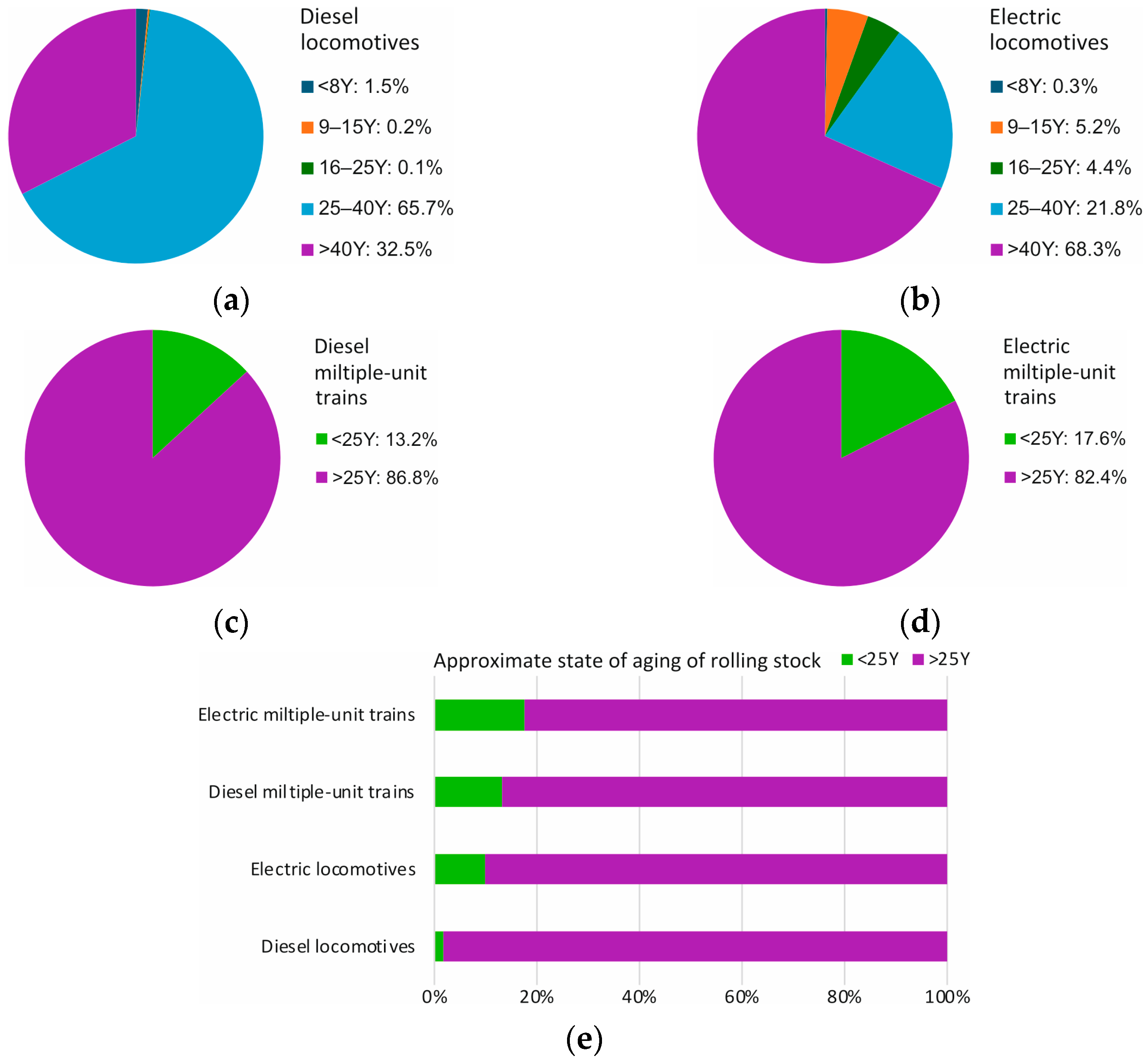The last mass deliveries of locomotives and trainsets took place in the mid-1980s, and the majority of these were equipped with DC traction motors. The current condition of the locomotive fleet has reached a critical point. Today, the average wear of the rolling stock of Ukrainian Railways exceeds 90%. Owing to the high degree of wear and the low rate of fleet renewal, the overall technical condition of the rolling stock is very poor. A significant proportion of the traction rolling stock has already exceeded its extended service life and must either be replaced with new units or undergo major modernisation. In the case of purchasing new vehicles, substantial investment and a short implementation period would be required. Therefore, it may be economically more feasible to modernise or overhaul the existing traction rolling stock instead of, or in parallel with, purchasing new units—the latter approach would allow faster replenishment of the operational fleet. Urban electric transport (trolleybuses, metro trains, and trams) faces a similar situation. According to [