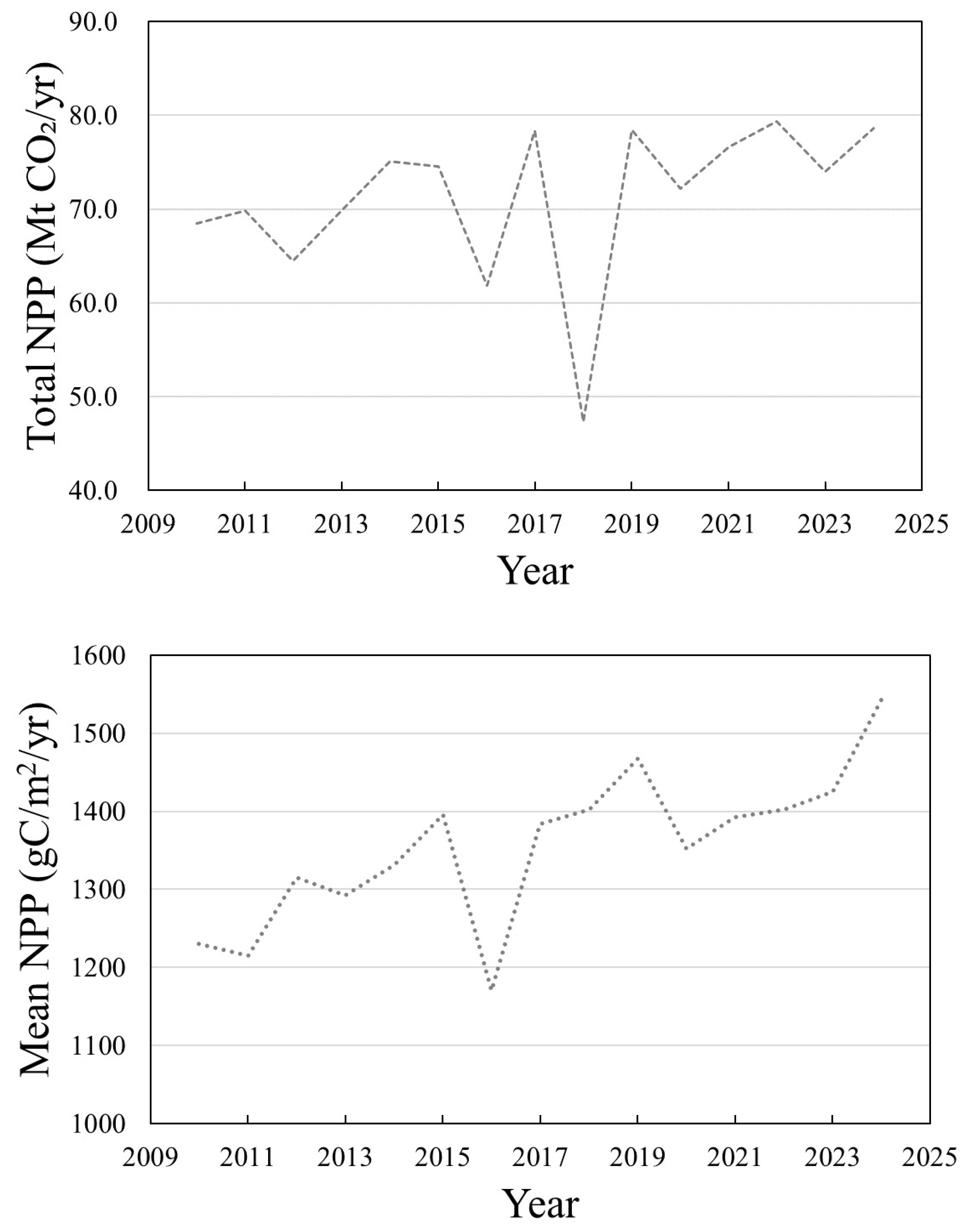 APA StyleKim, N.-S., Lee, J.-H., & Lee, C.-S. (2025). Spatiotemporal Dynamics of Carbon Sequestration Potential Across South Korea: A CASA Model-Based Assessment of NPP, Heterotrophic Respiration, and NEP. Sustainability, 17(21), 9490. https://doi.org/10.3390/su17219490
