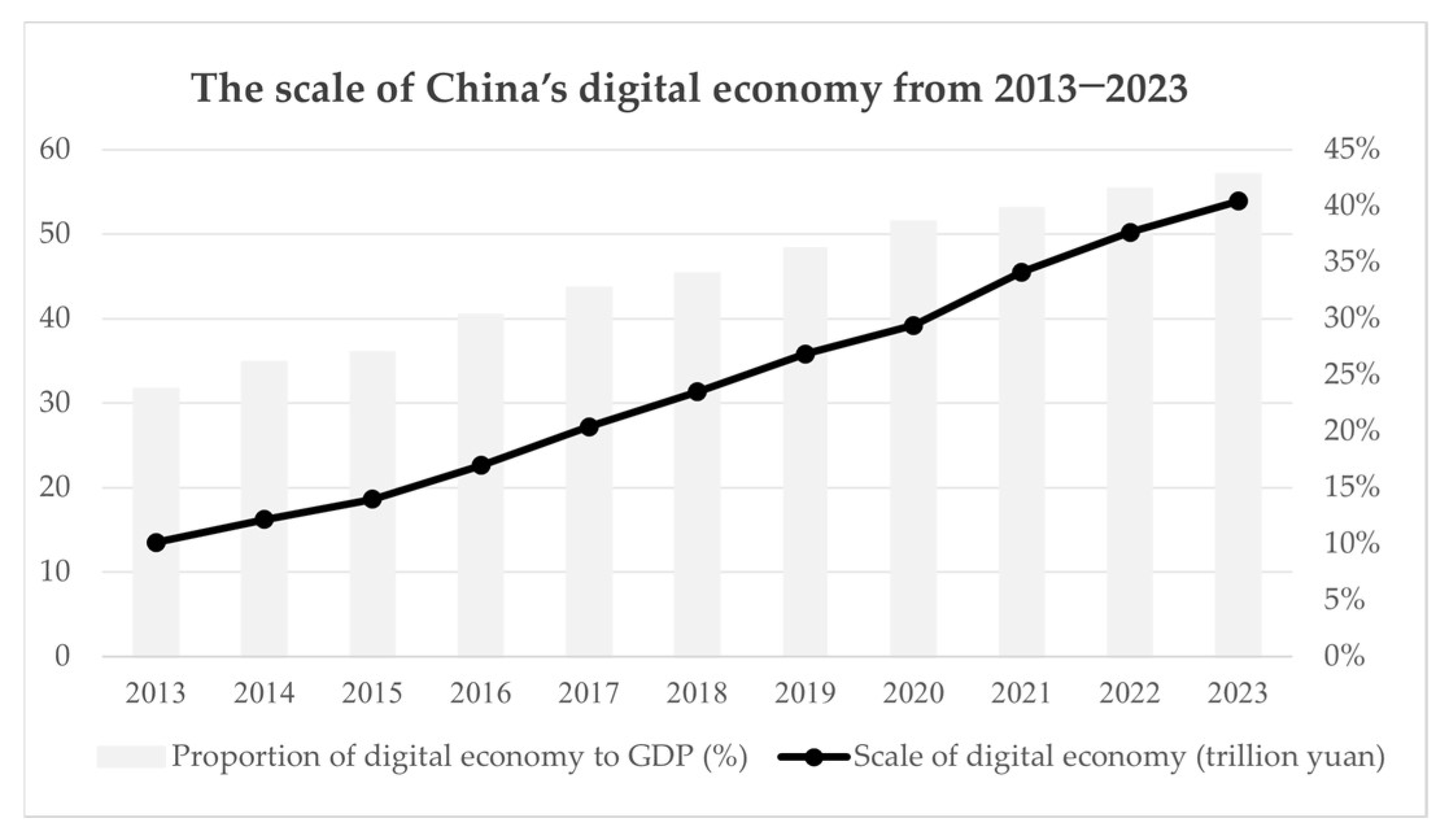 Figure 1, from 2013 to 2023, the scale of China’s digital economy grew from 13.5 trillion yuan to 53.9 trillion yuan, with its share in GDP increasing from 23.7% to 42.8%. This trajectory demonstrates the strong momentum of DC and reflects the significant impact of policy drivers in shaping the digital ecosystem and corporate behavior.