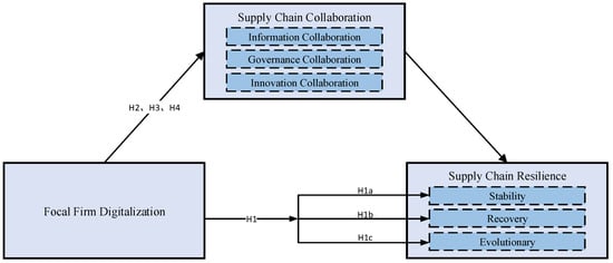 To more clearly illustrate the relationship between focal firm digitalization and supply chain resilience as well as the underlying mechanisms, this study presents a conceptual model in Figure 1.