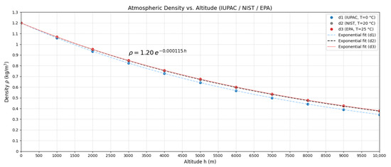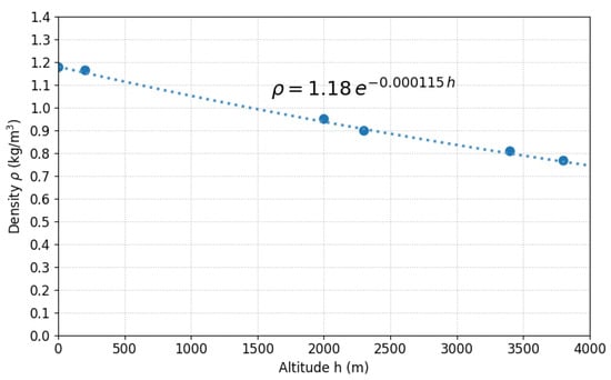 Atmospheric density follows a law analogous to that of pressure [14]. From Equations (5) and (7),
