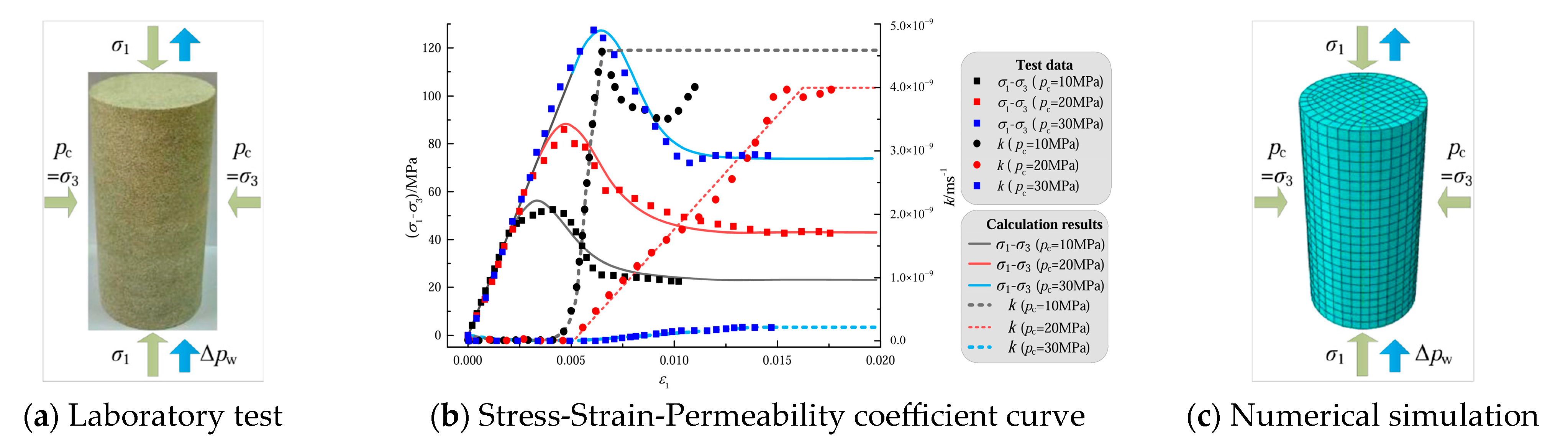 | Medium sandstone | 14.35 | 10.3 | 42 | 7.6 × 10−9 | 1.2 × 10−6 | 12.7 |