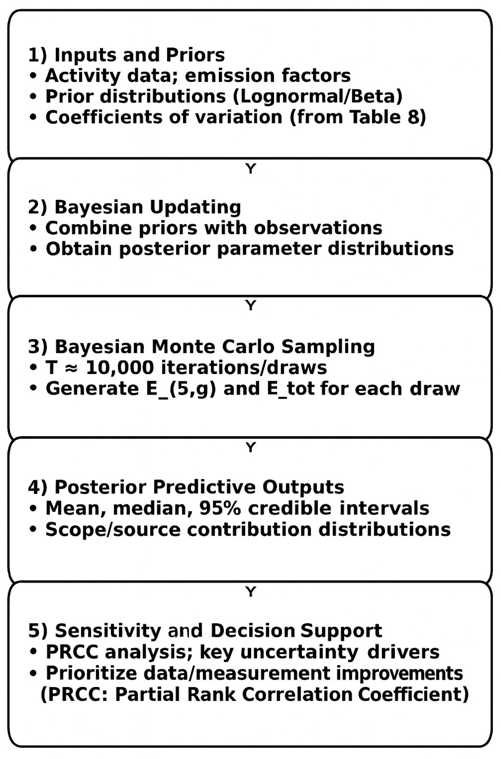 3.5. Uncertainty and Materiality Assessment—Bayesian Monte Carlo Approach