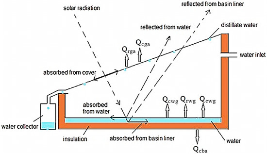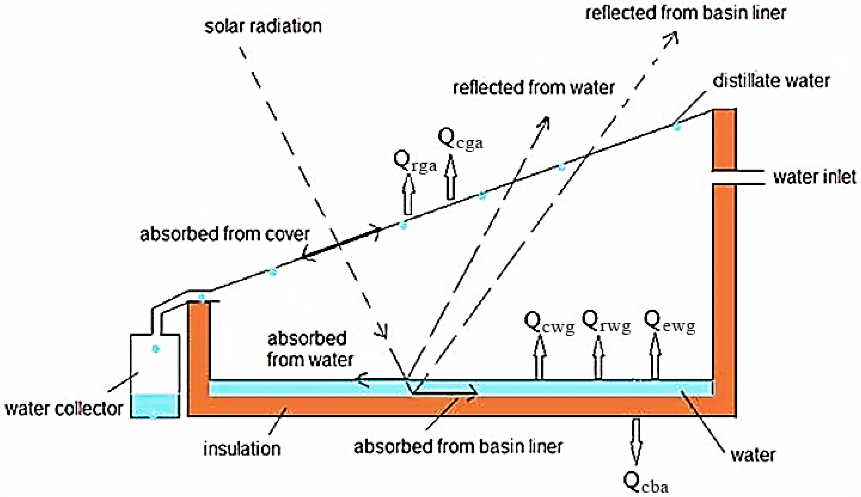 - Santosa, I.; Wibowo, A.; Wilis, G.R.; Sidik, M.F. Heat transfer analysis single slope solar still with vacuum type. In AIP Conference Proceedings; AIP Publishing LLC: Melville, NY, USA, 2024; Volume 2952, p. 080002. [Google Scholar] [CrossRef]