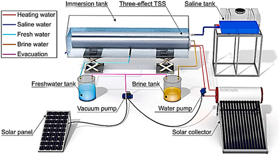 - Xie, G.; Chen, W.; Yan, T.; Tang, J.; Liu, H.; Cao, S. Three-effect tubular solar desalination system with vacuum operation under actual weather conditions. Energy Convers. Manag. 2020, 205, 112371. [Google Scholar] [CrossRef]
