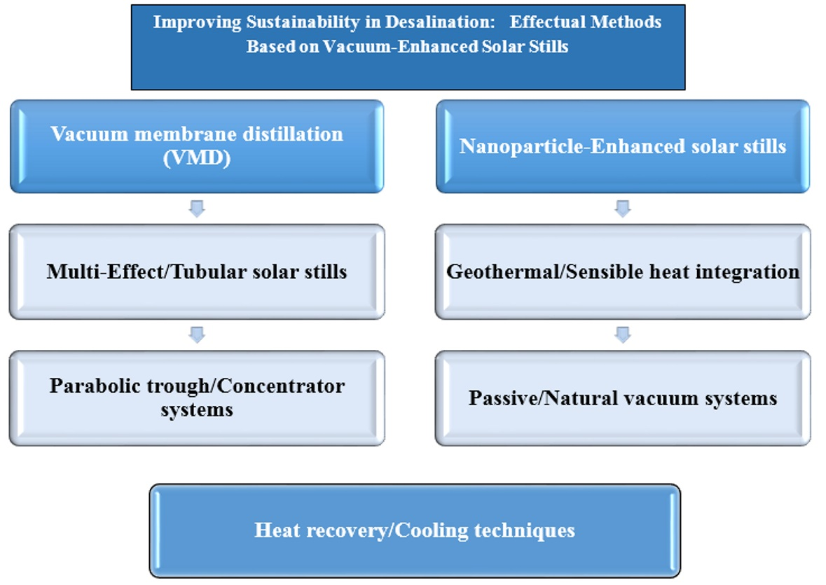 - Vacuum-assisted solar stills exhibit a 30–305% increase in the production of freshwater as per conventional systems, mainly because of the lowered boiling points and the inhibition of convective heat dissipation.