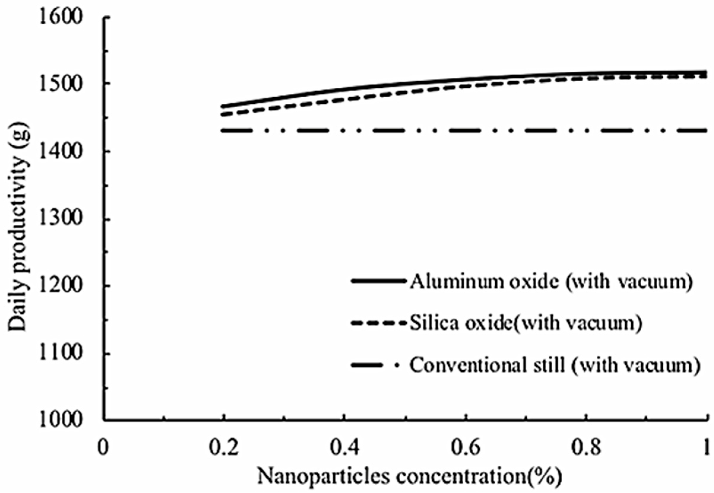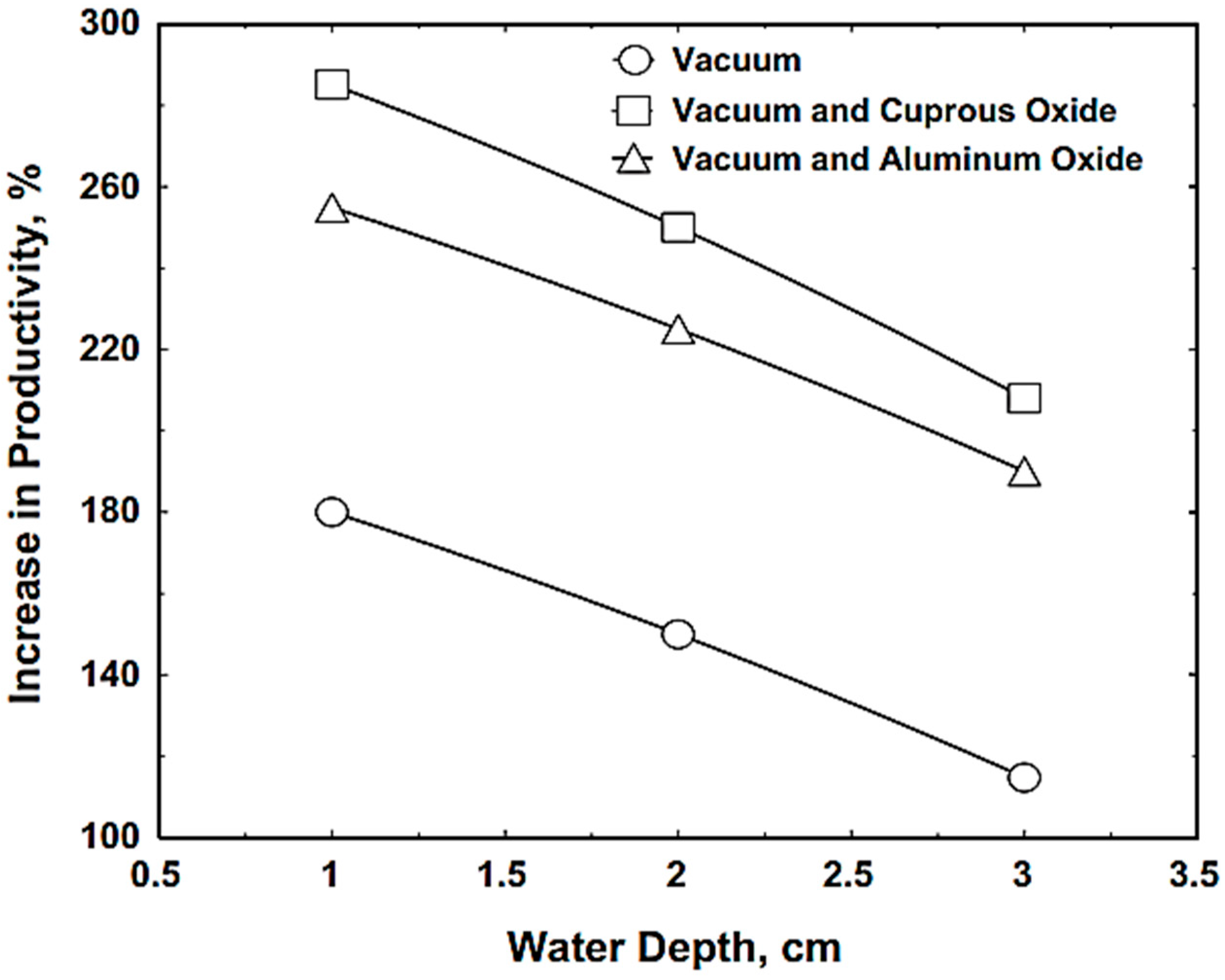 - The deposition of nanoparticles (e.g., Cu2O, Al2O3) under vacuum conditions offered a 133.6% evaporation increase, in addition to the improvement in thermal conductivity and radiative absorption.