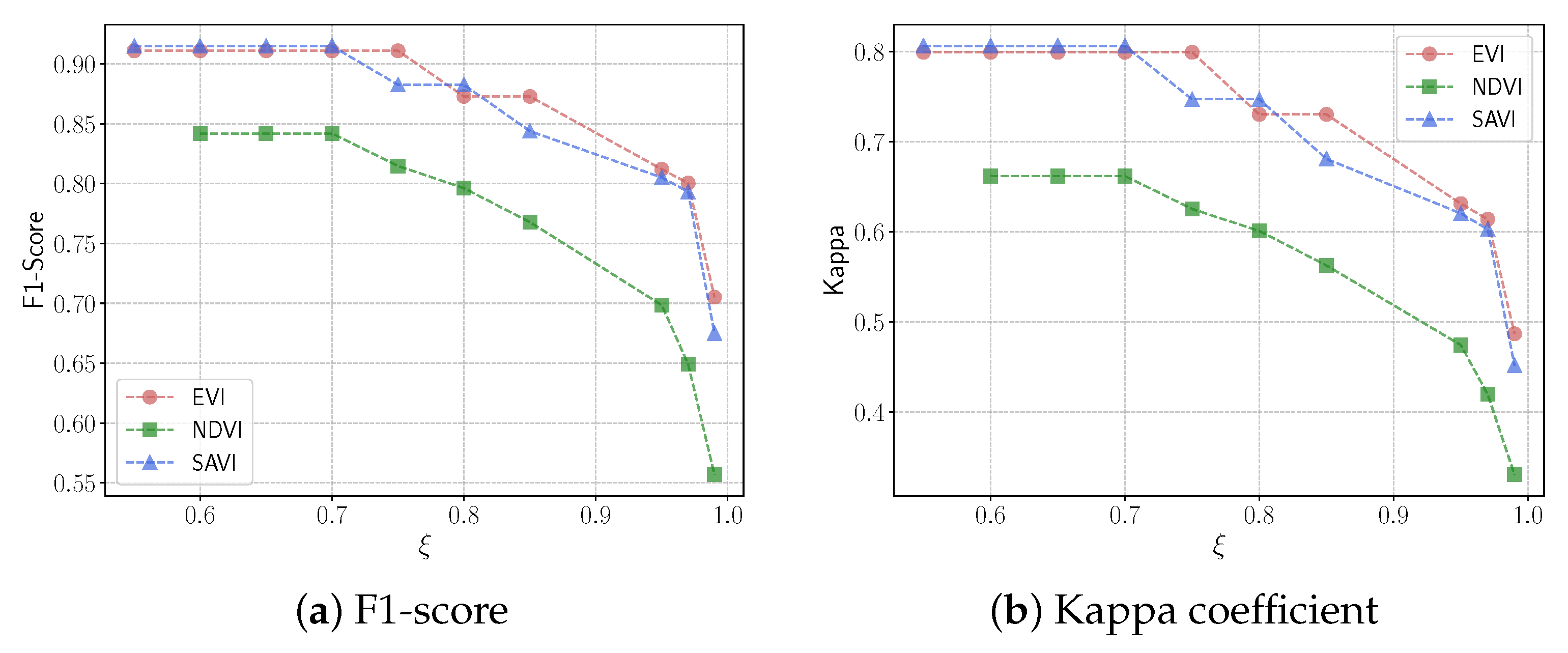 - Zhao, C.; Pan, Y.; Ren, S.; Gao, Y.; Wu, H.; Ma, G. Accurate vegetation destruction detection using remote sensing imagery based on the three-band difference vegetation index (TBDVI) and dual-temporal detection method. Int. J. Appl. Earth Obs. Geoinf. 2024, 127, 103669. [Google Scholar] [CrossRef]