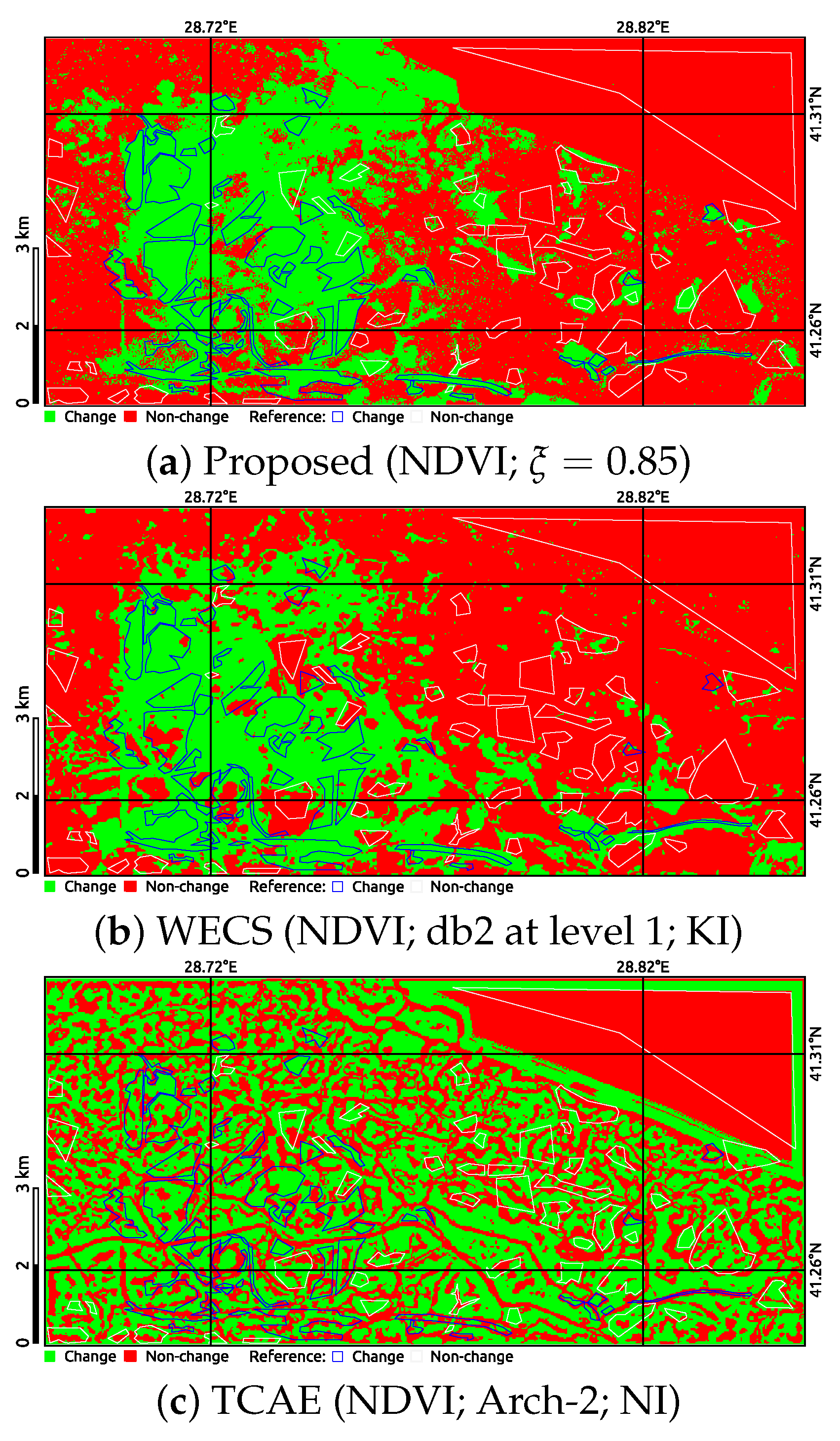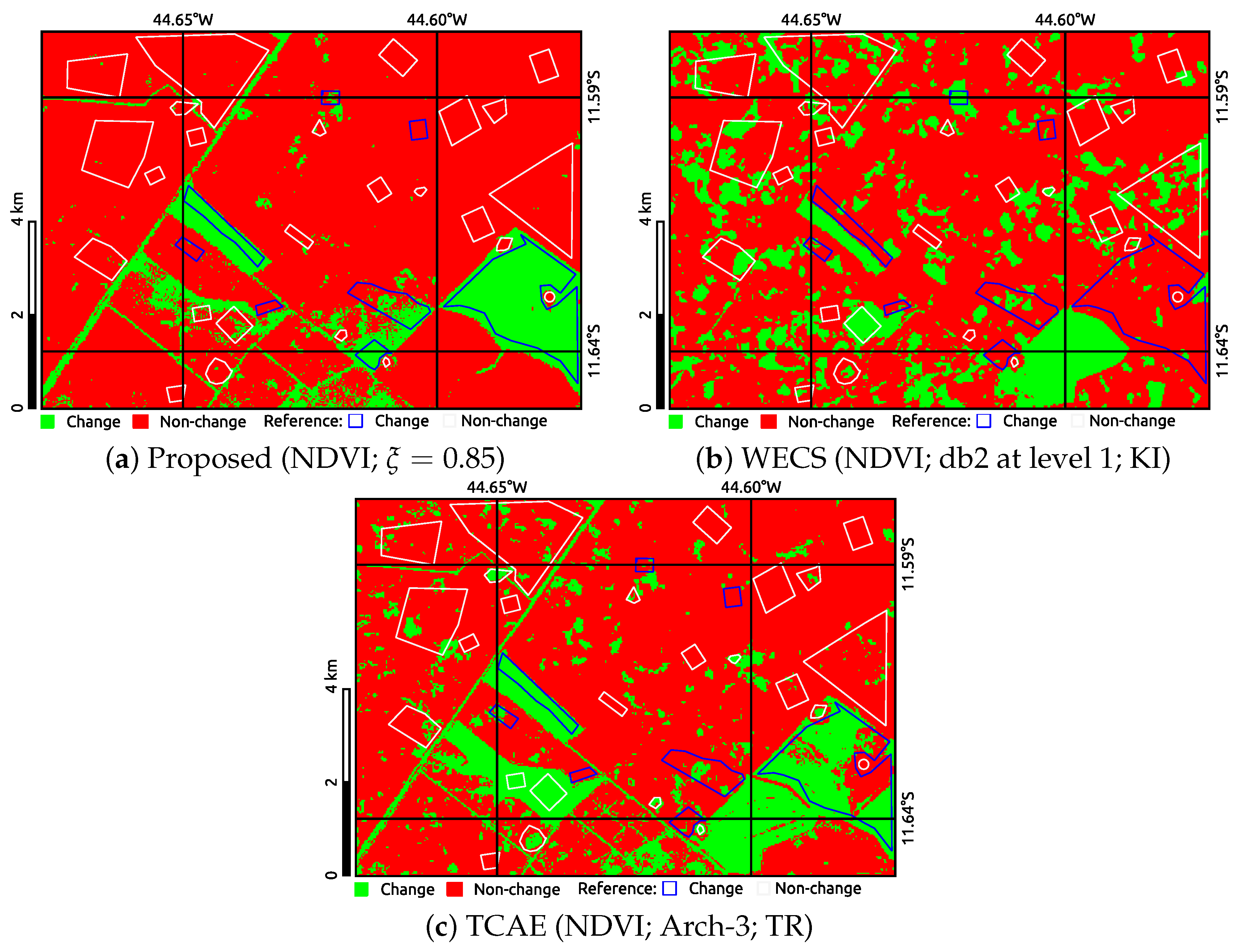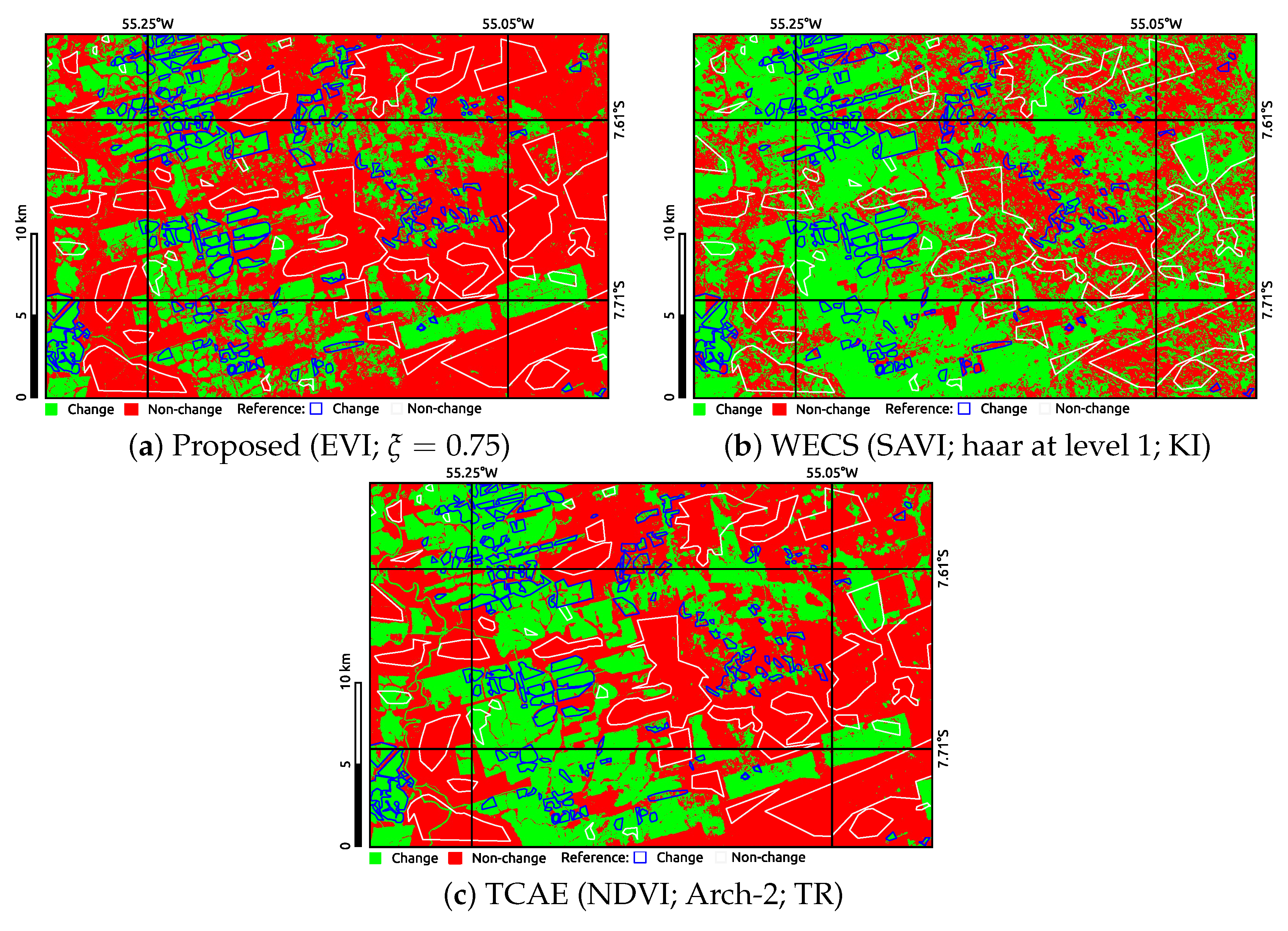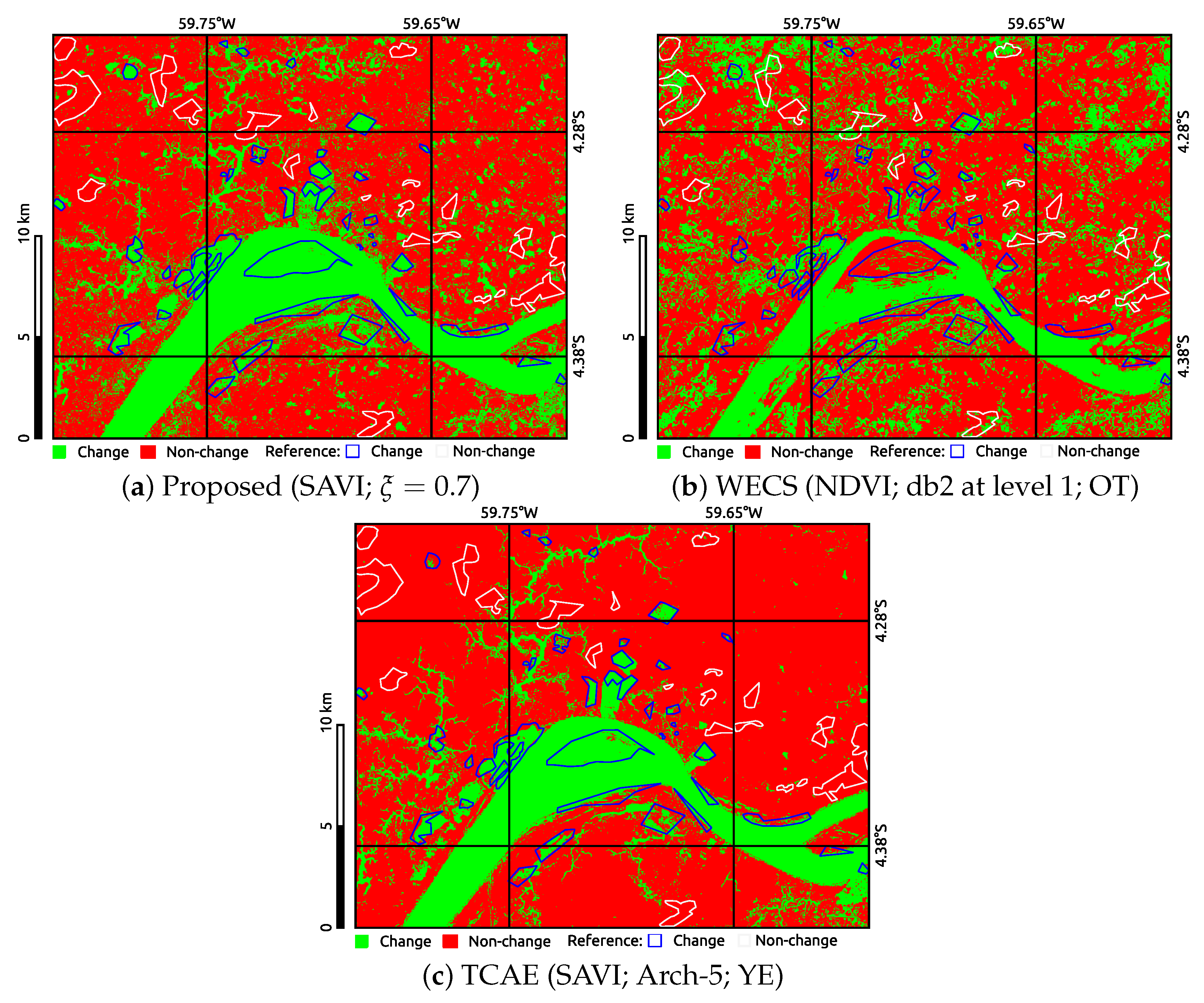- Negri, R.G.; Frery, A.C. Unsupervised Change Detection Driven by Floating References: A Pattern Analysis Approach. Pattern Anal. Appl. 2021, 24, 933–949. [Google Scholar] [CrossRef]