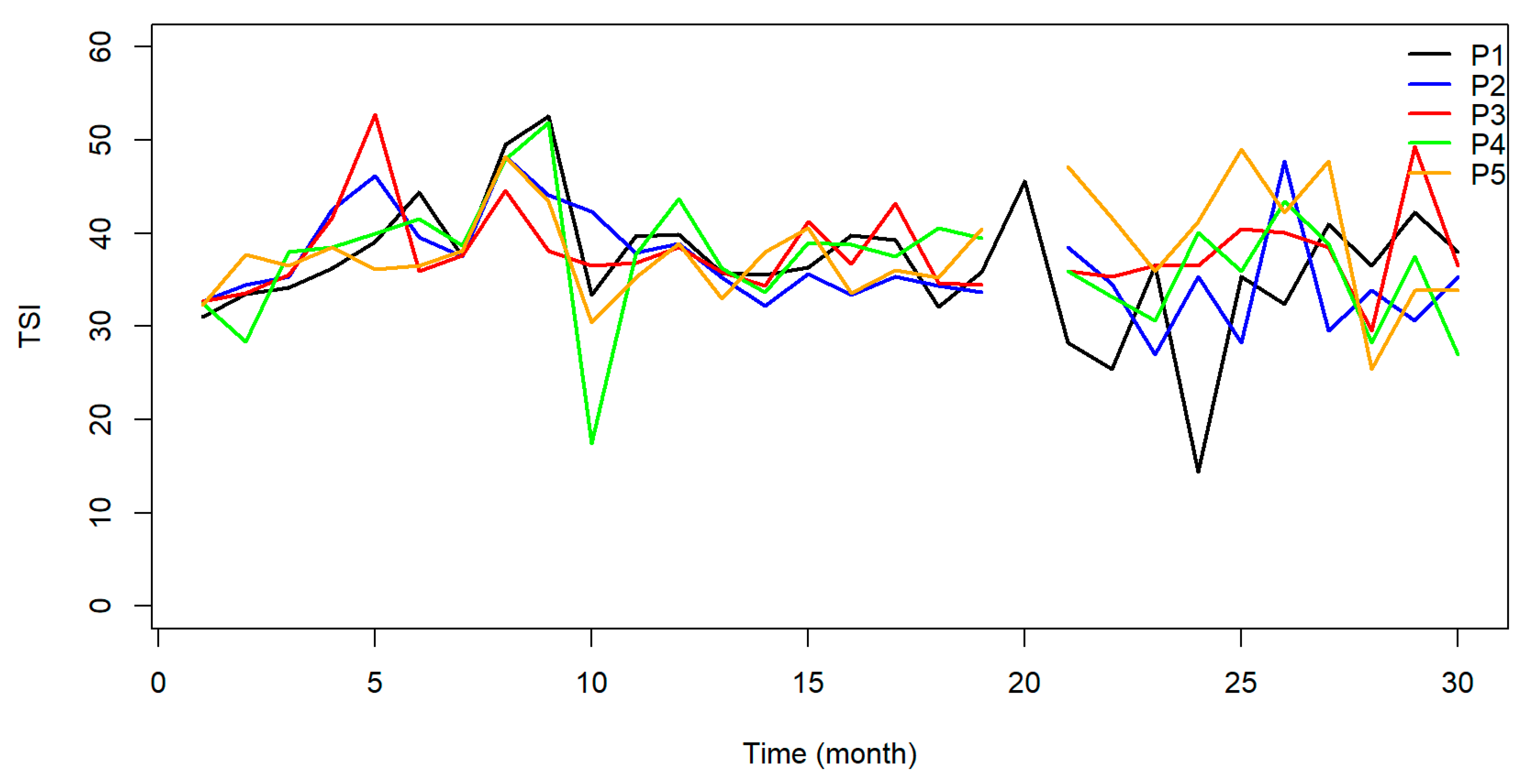 2.6. The Trophic State Index (TSI)