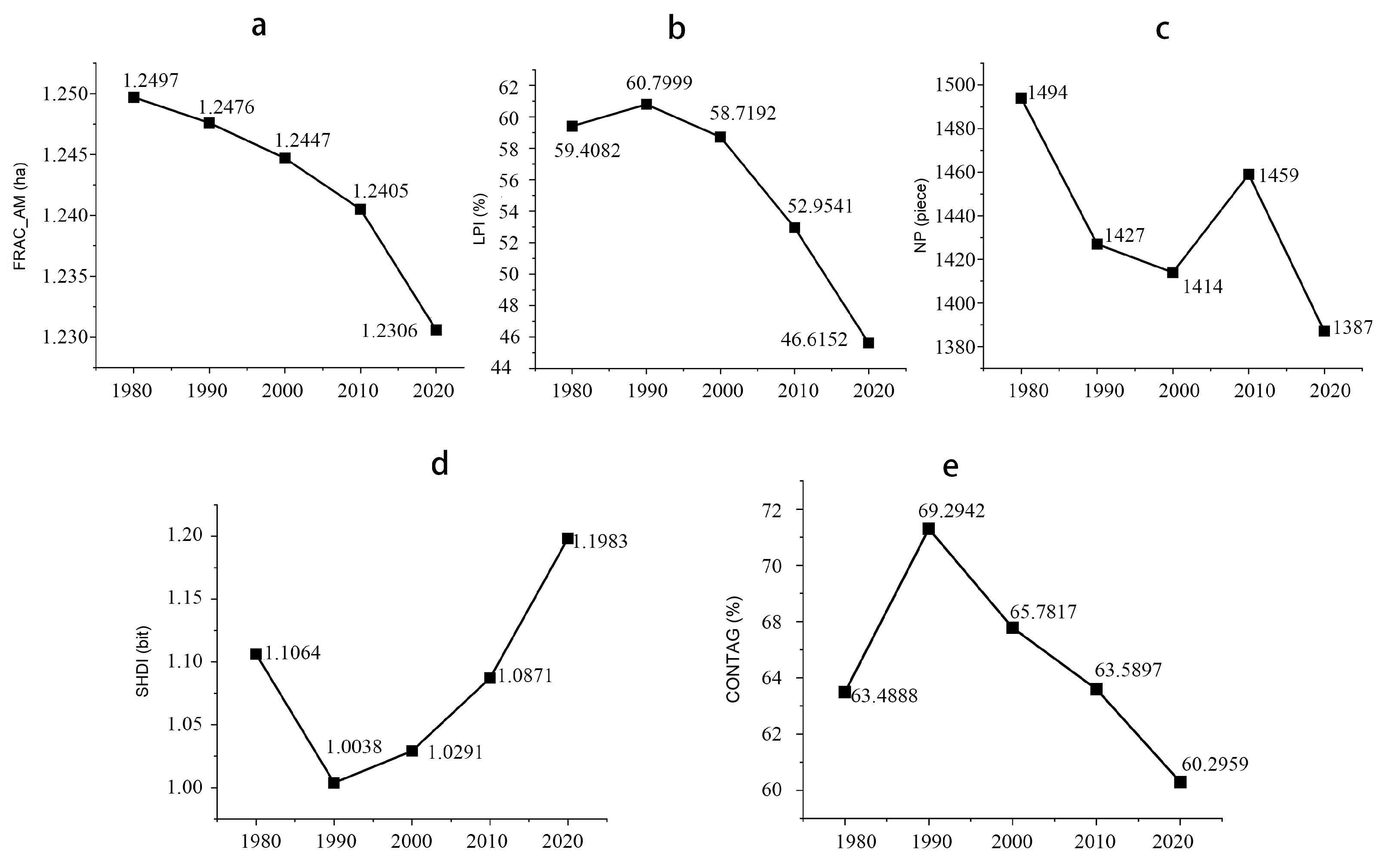 4.1. Driving Mechanism and Causal Relationship of Land Use Change on Landscape Pattern Evolution