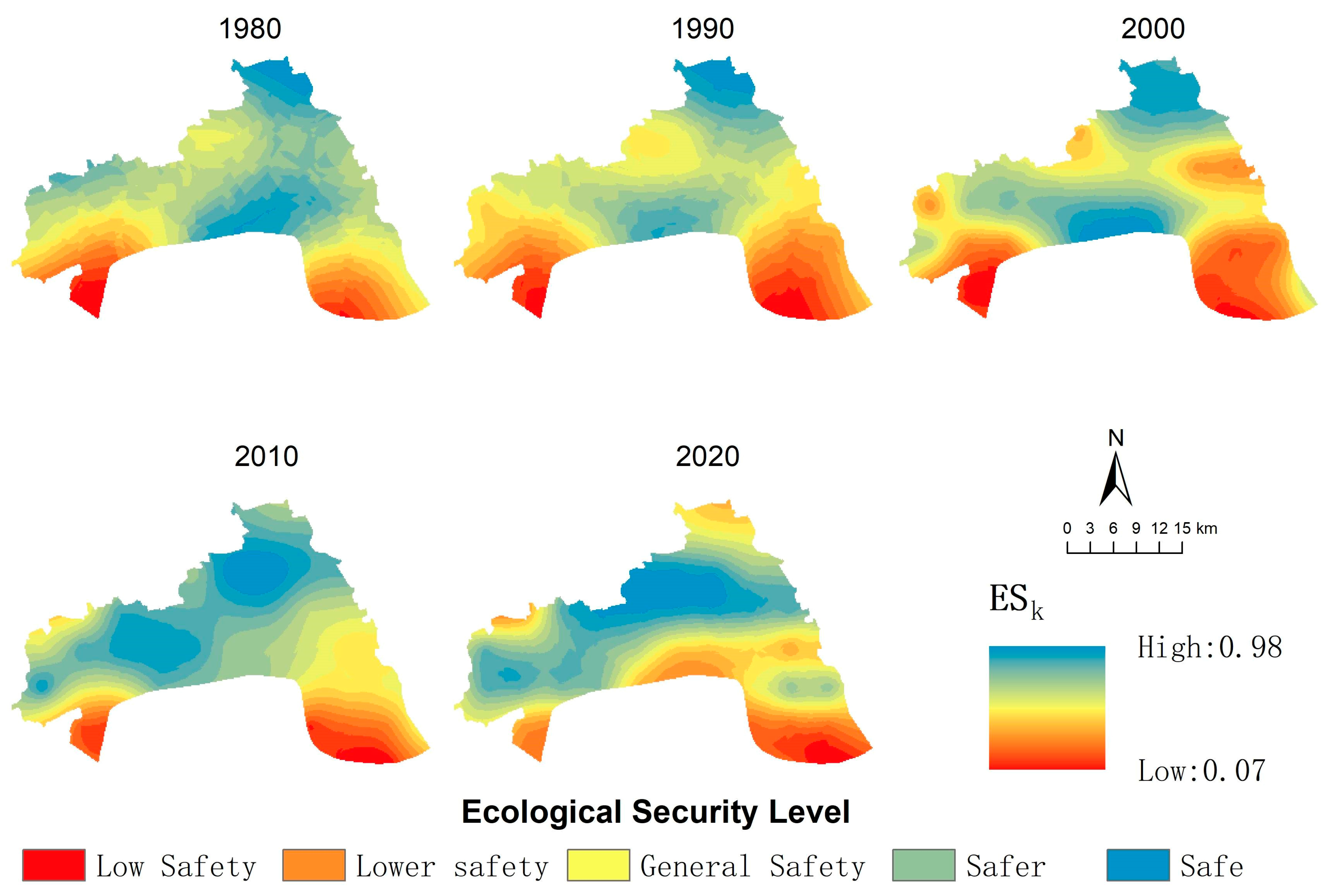 3.3. Evolution of the Landscape Ecological Security Pattern