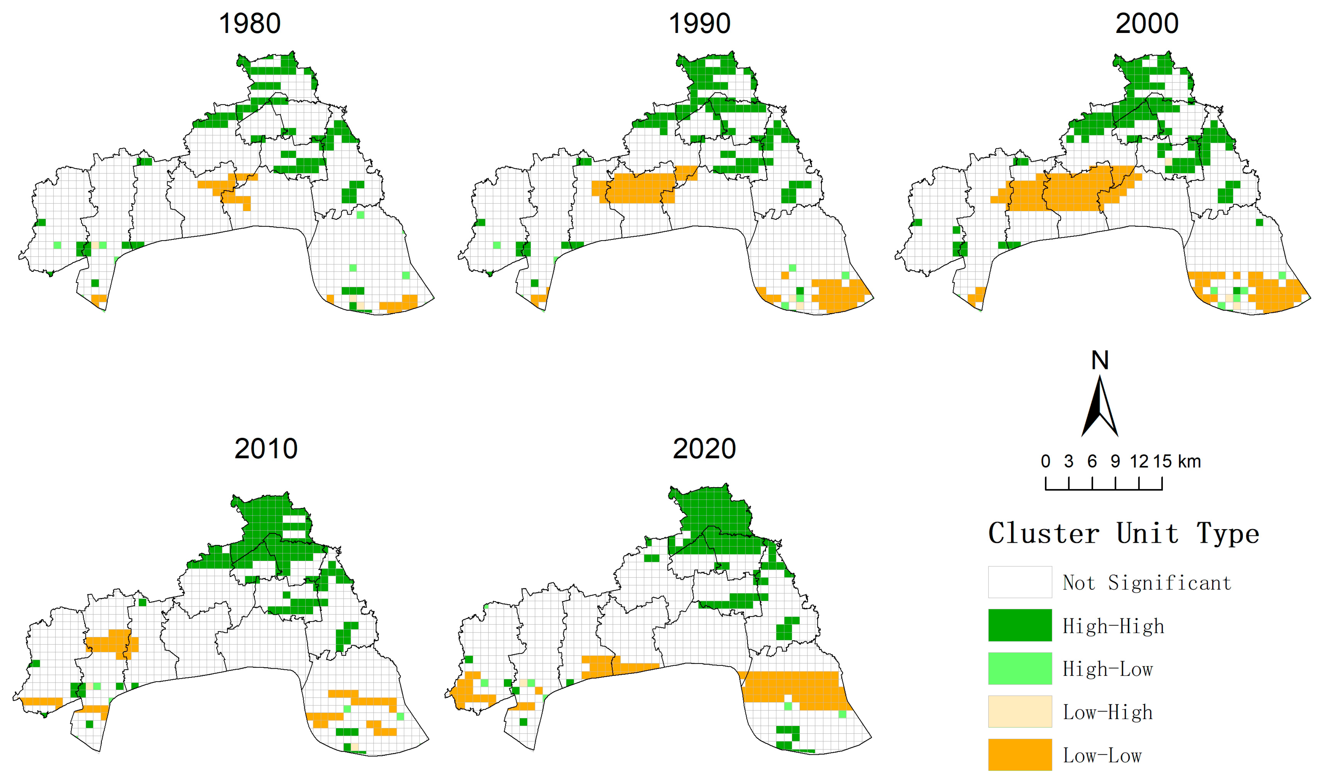 3.3.2. Spatial Autocorrelation Analysis of the Landscape Ecological Security Index
