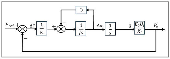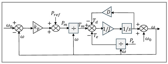 From this, the control block diagram of the active-frequency link is shown in Figure 3 as follows; this figure provides a detailed description of the “active power control” section shown in Figure 2.