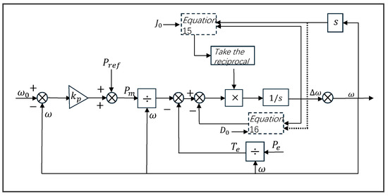 The block diagram of the VSG adaptive active power–frequency control section is shown in Figure 8. The values of J and D obtained using Equations (16) and (17) are substituted for the fixed and of the original VSG.