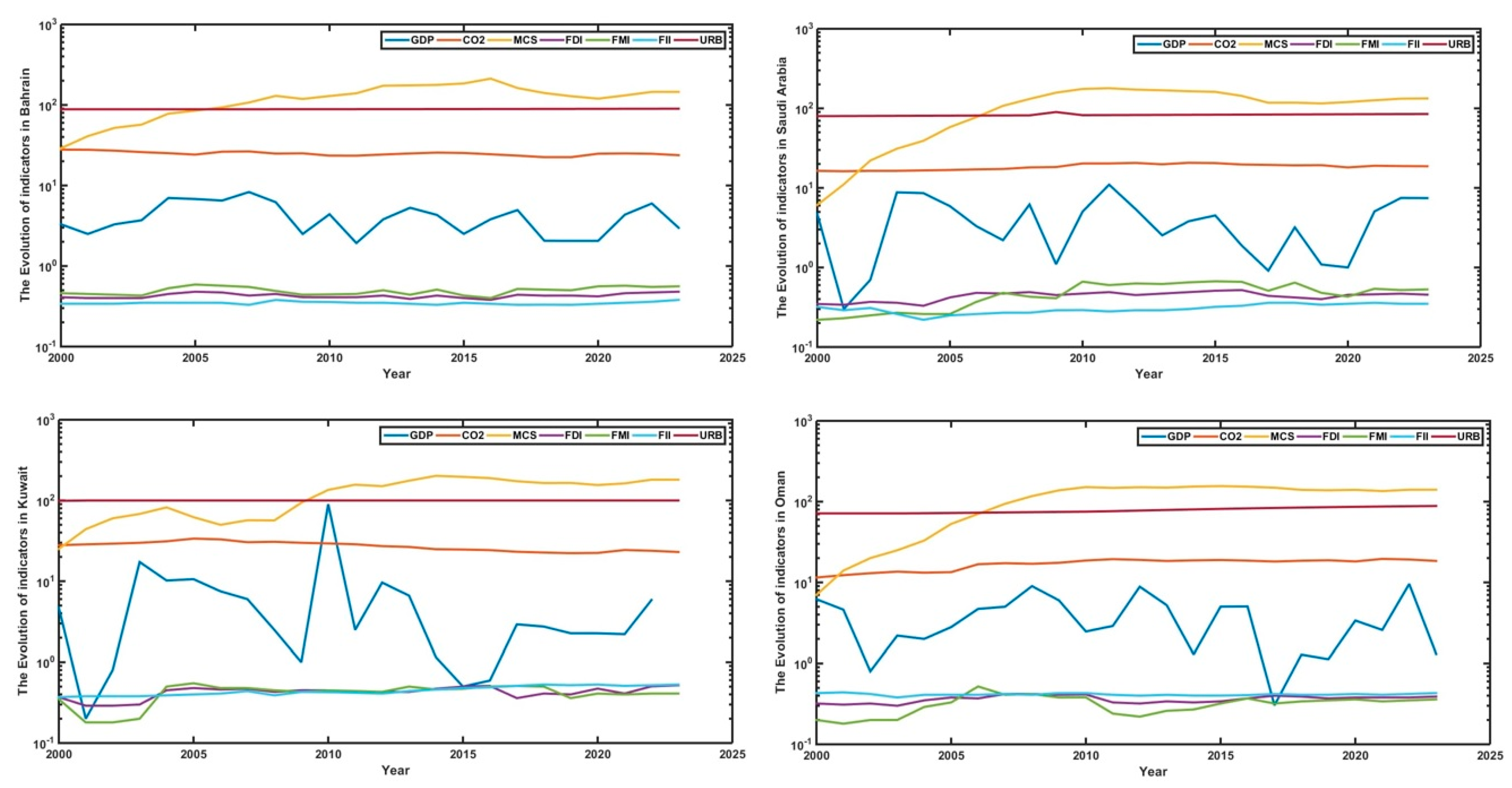 Overall, these trends support the hypothesis that economic and demographic factors are significant determinants of carbon emissions in the GCC countries. The differences across countries underline the importance of context-specific approaches to sustainable development.
